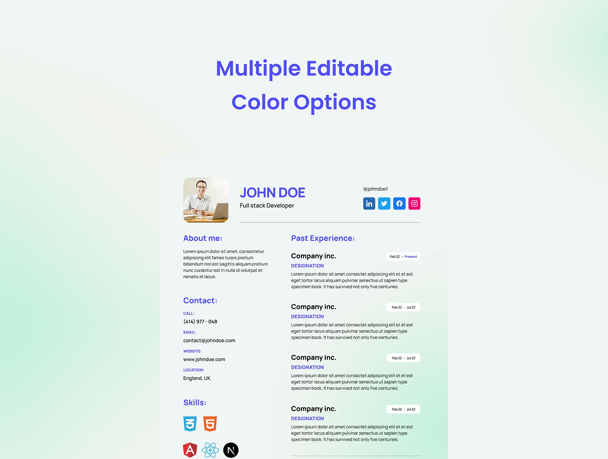 免费漂亮的创意简历模板psd,ai格式