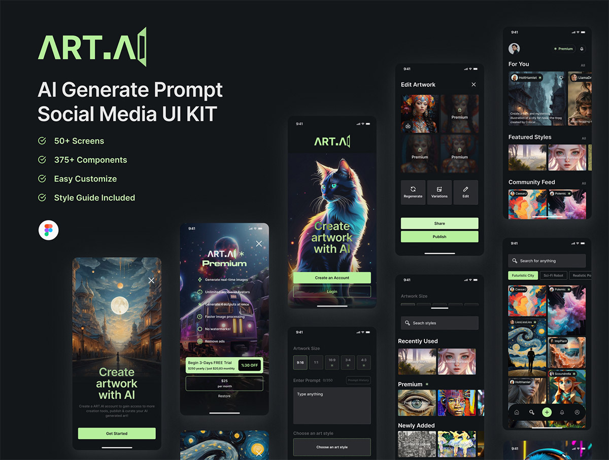 40页AI插画生成器社交媒体UI工具包figma源文件