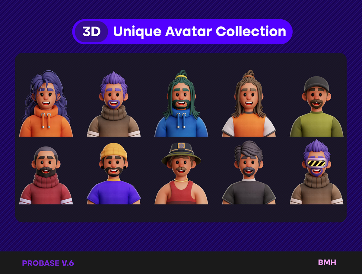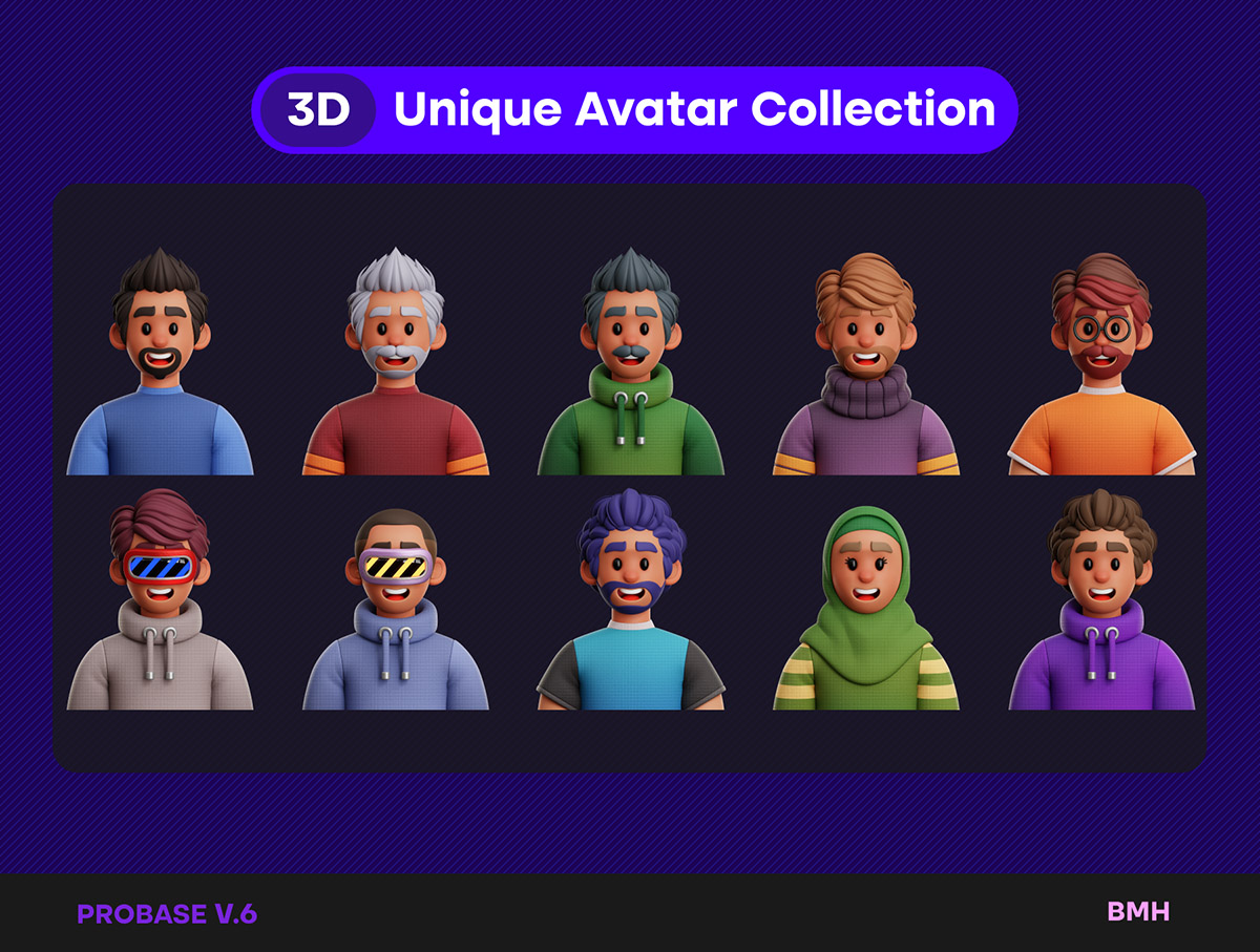 48个独特可以的3D头像png,jpg格式