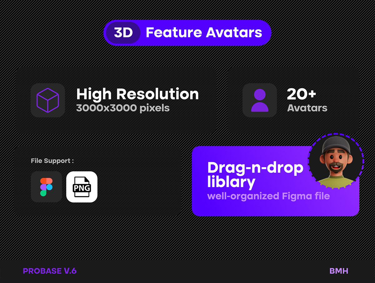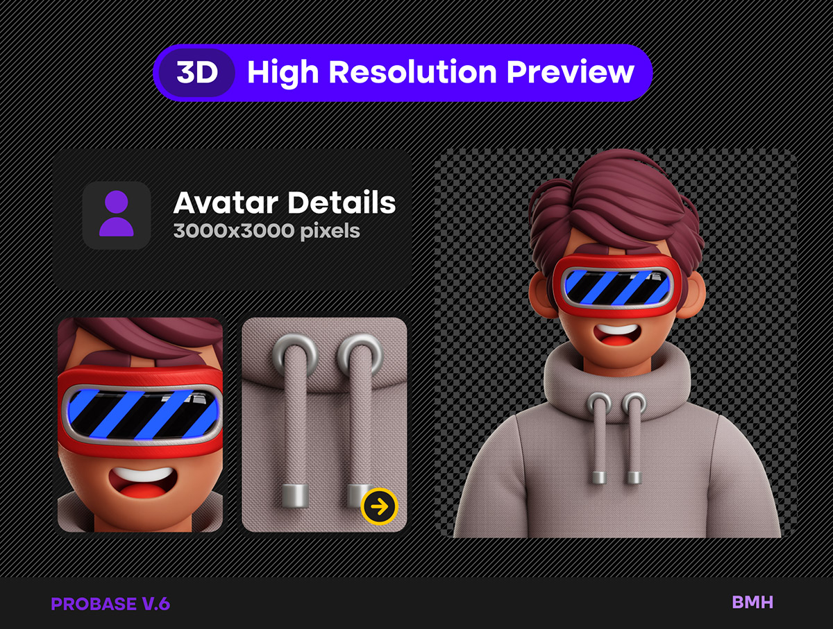 设计师作品集PSD源文件,配套3D人物头像素材