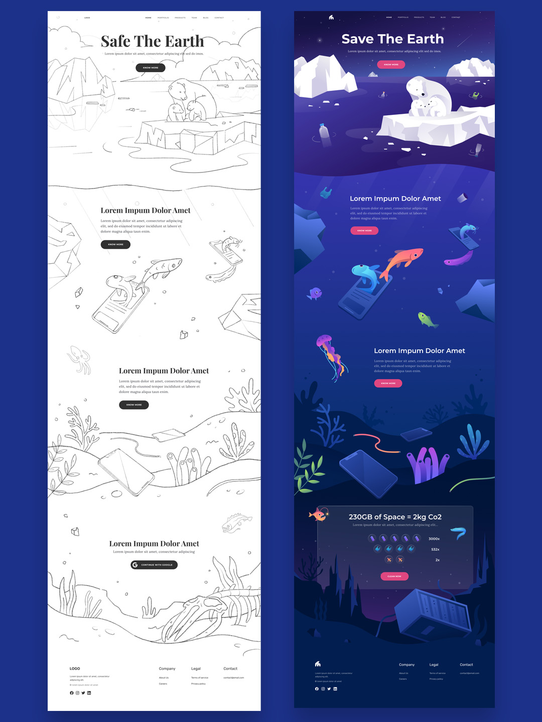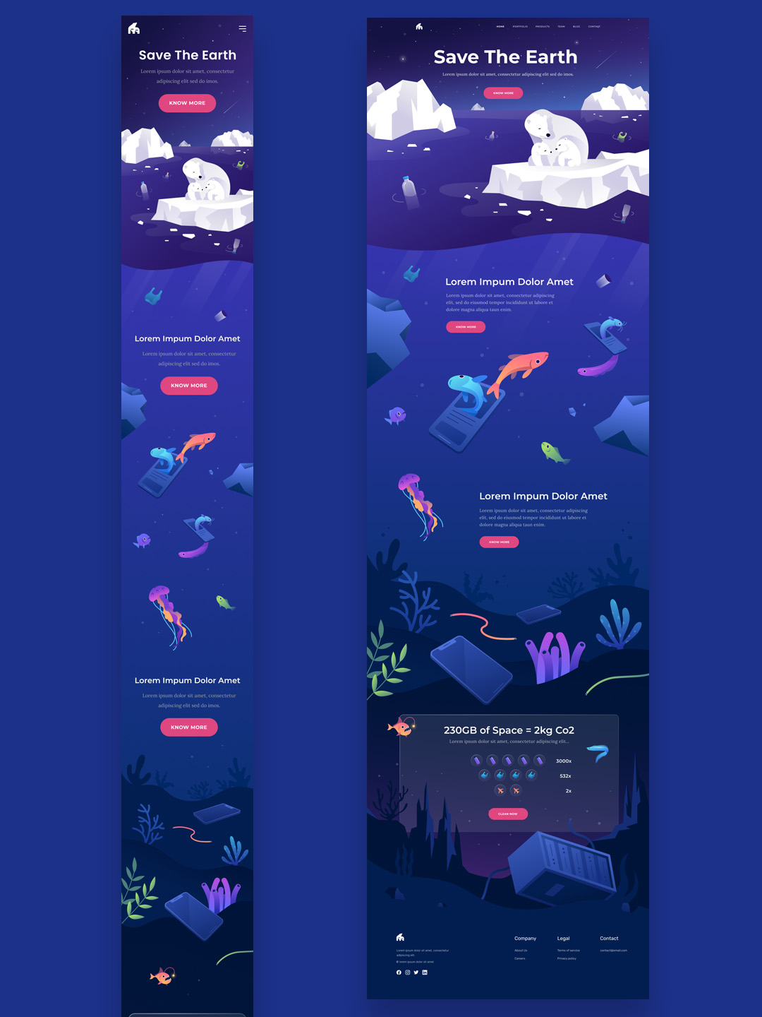 手绘风格海洋生物保护|响应式网站设计