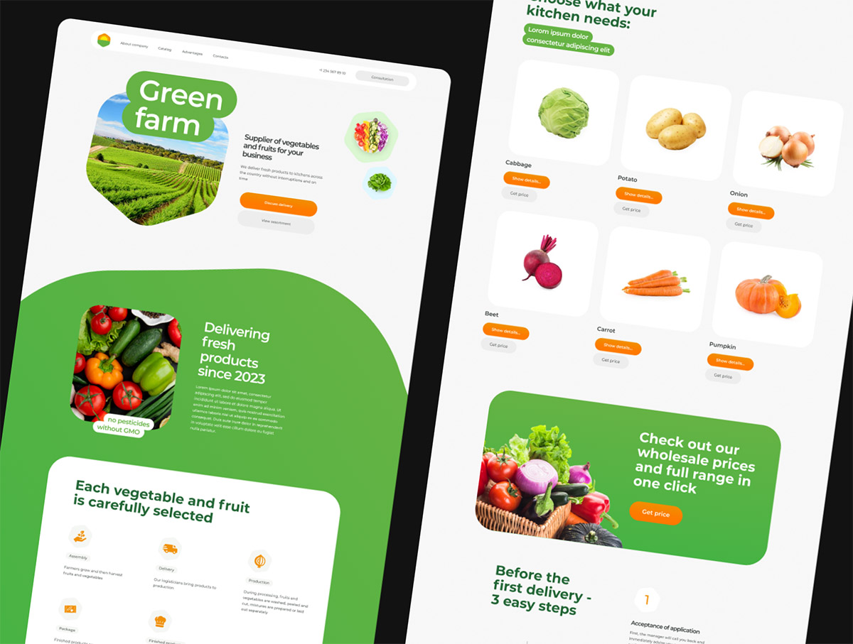 响应式绿色蔬菜,绿色农场网站设计素材