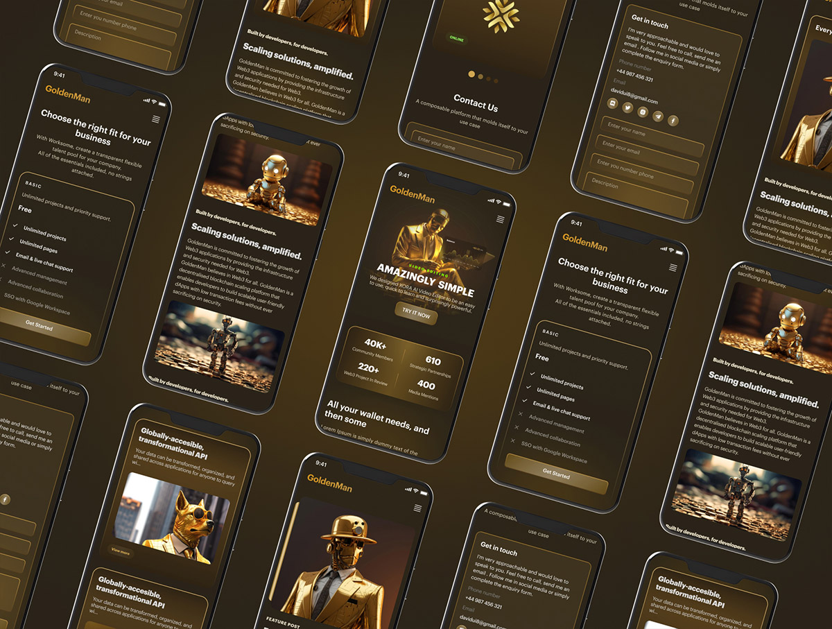10个高级UI页金色设计企业展示网站设计figma源文件