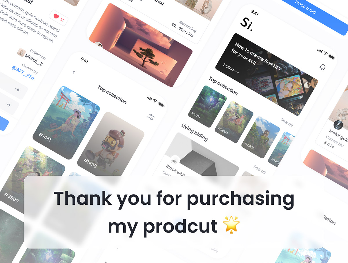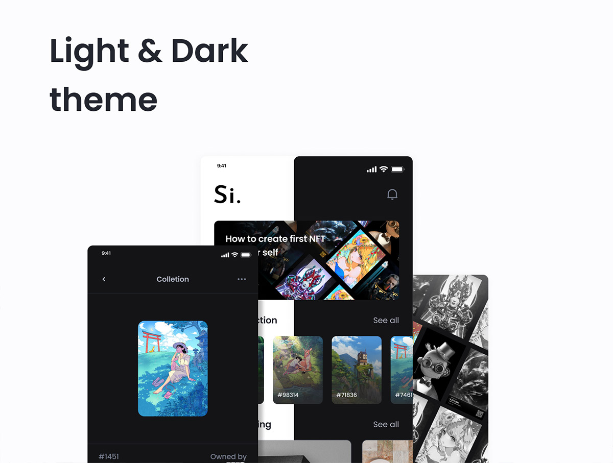 NFT市场APP UI资源素材套件包含黑白双色figma源文件
