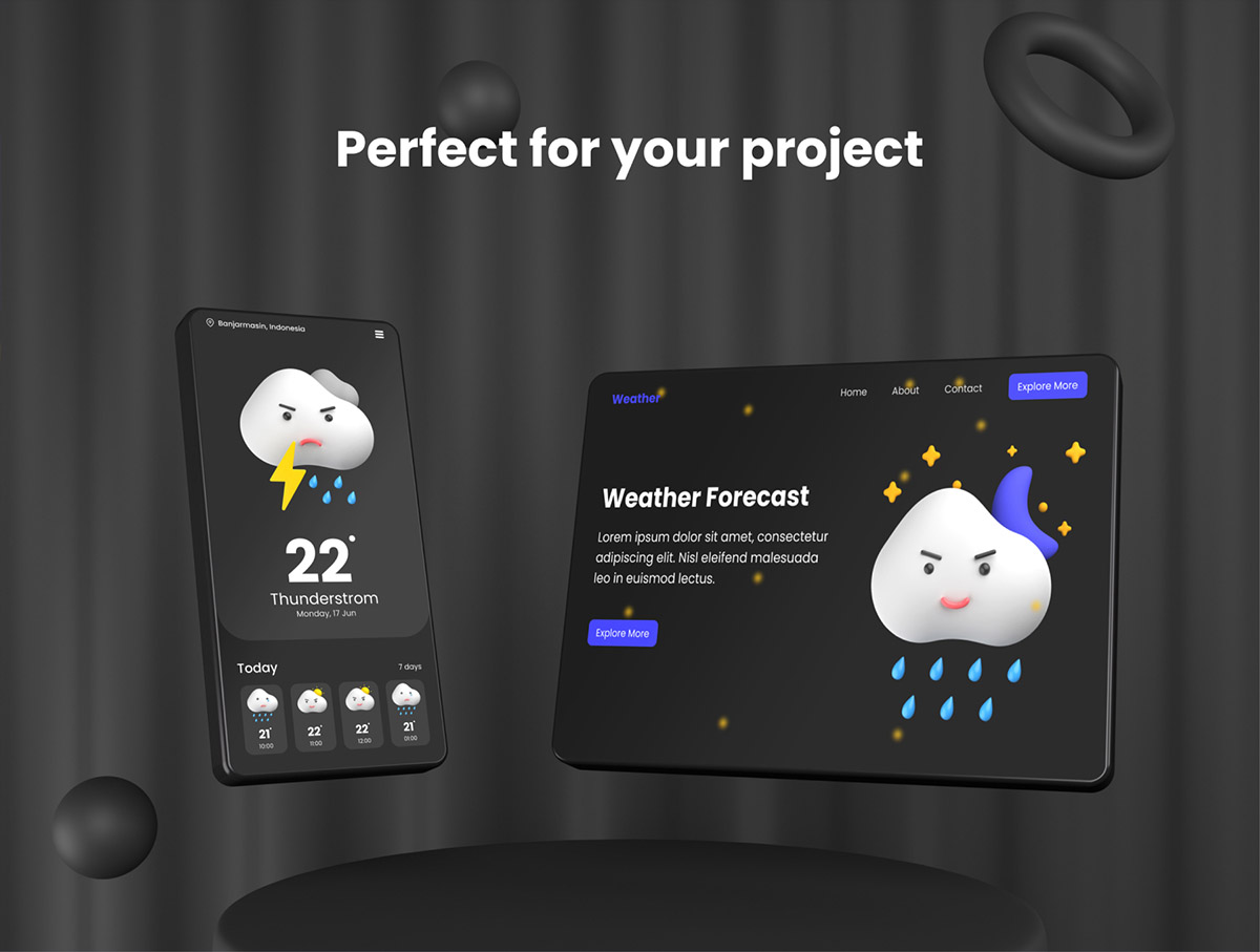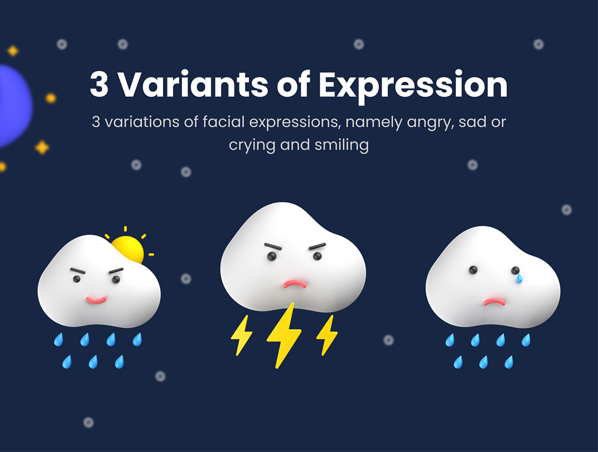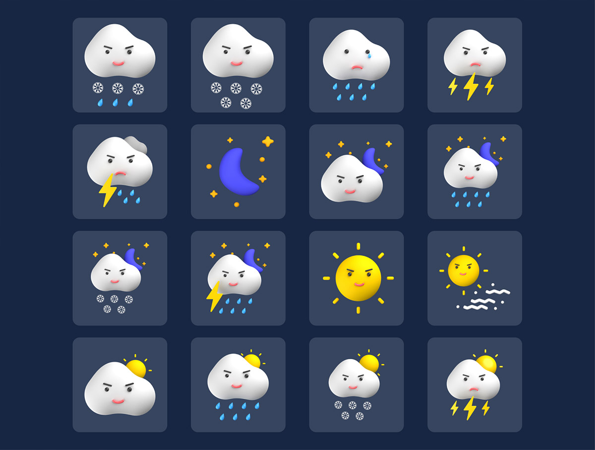 24个3D天气图标表情包Figma、Photoshop、PNG格式
