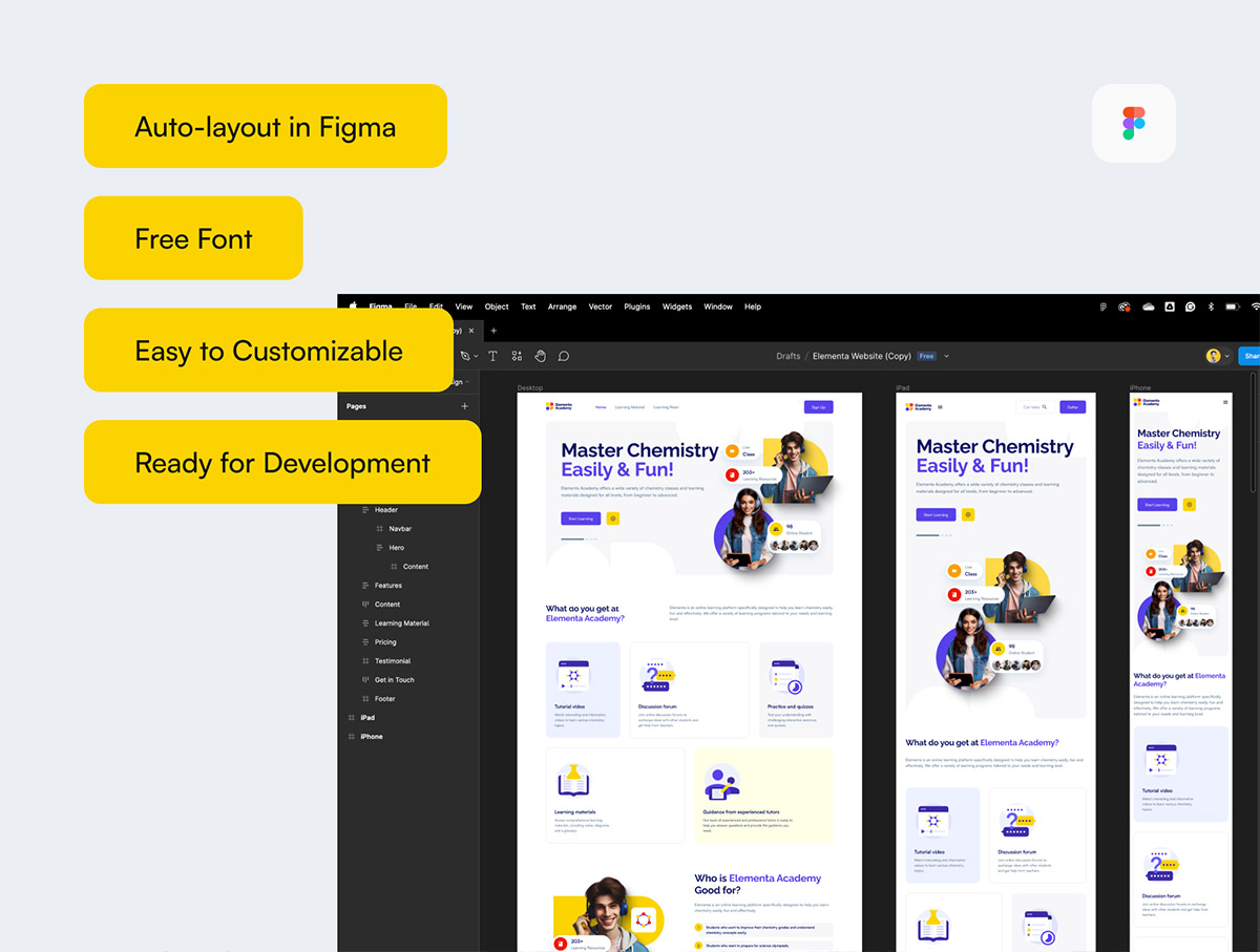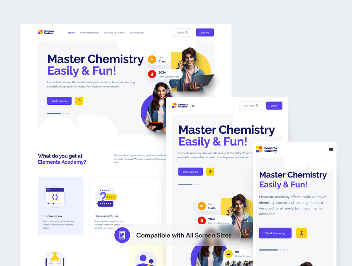响应式课程学习网站UI设计Figma, Sketch和Adobe XD格式