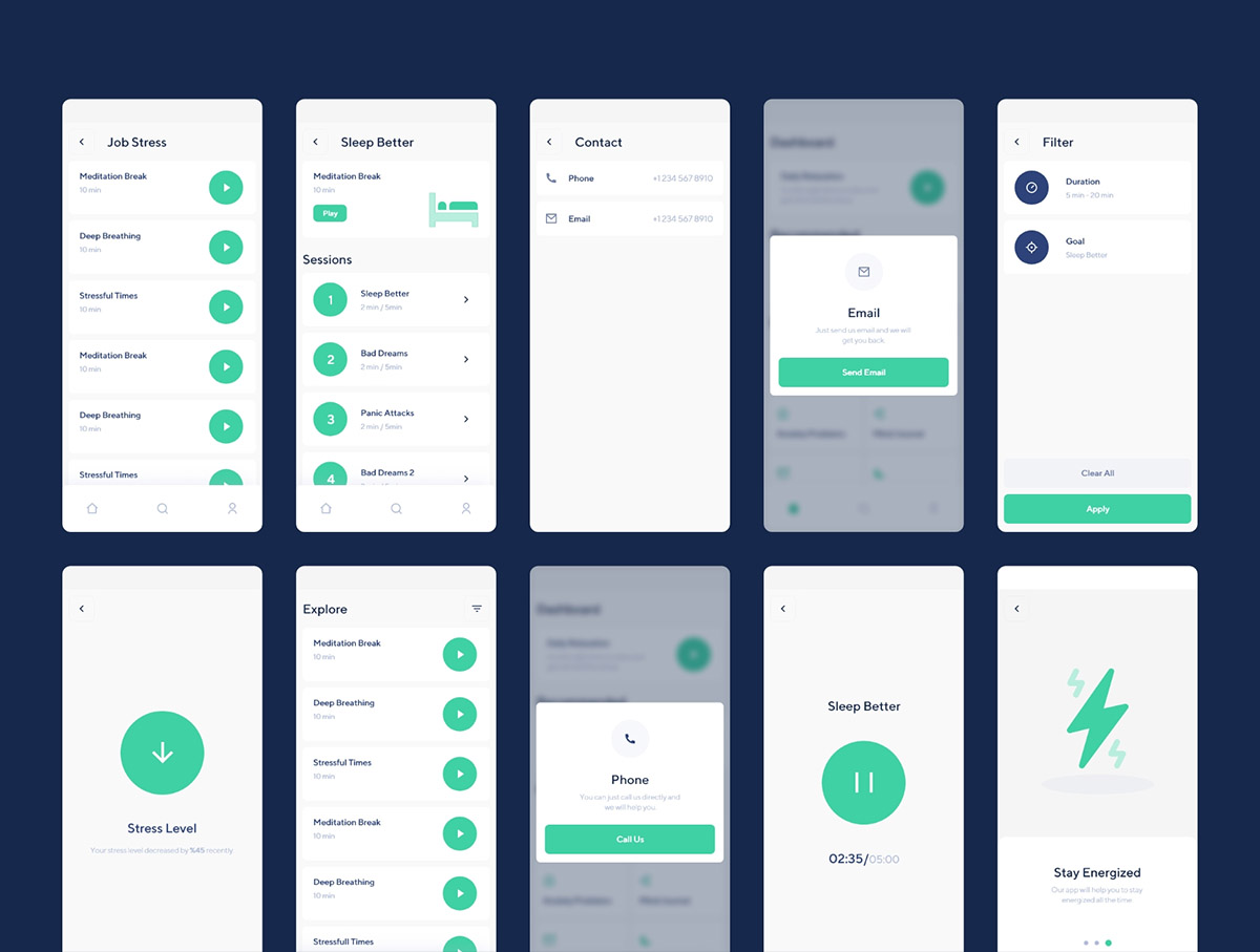 冥想应用UI工具包,总共包含60屏,xd源文件