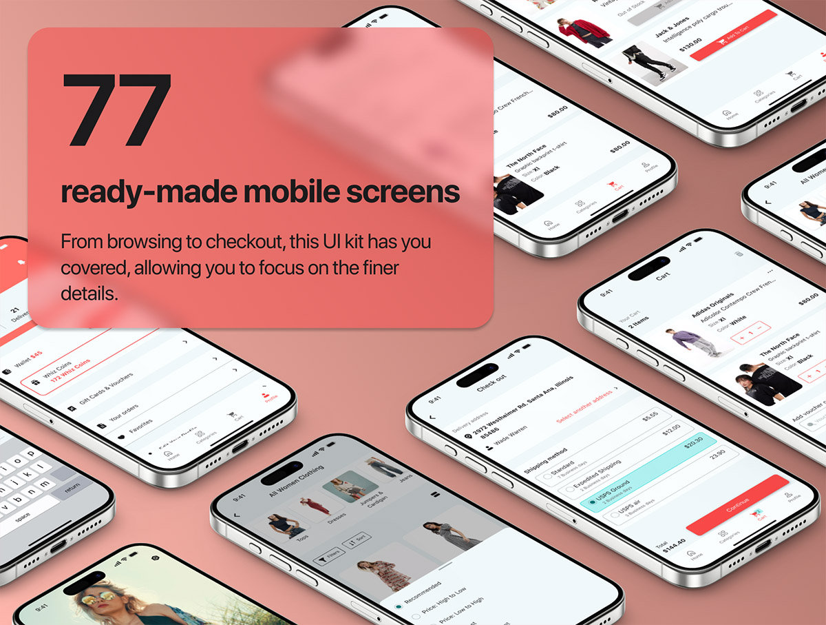 77页服装电商移动UI工具包figma源文件