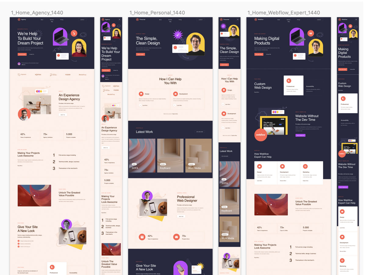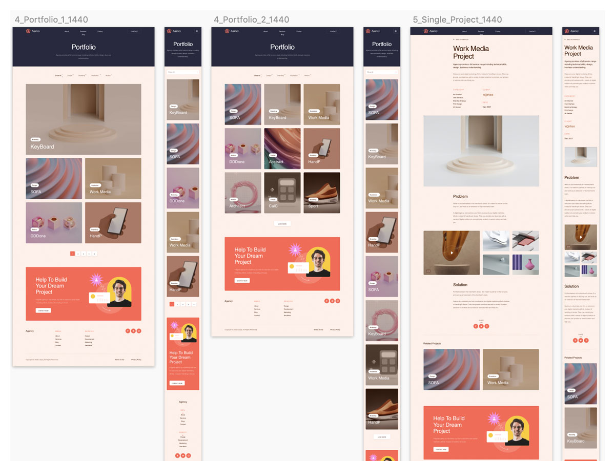 12页响应式设计,设计师作品集网站设计sketch,xd,figma源文件