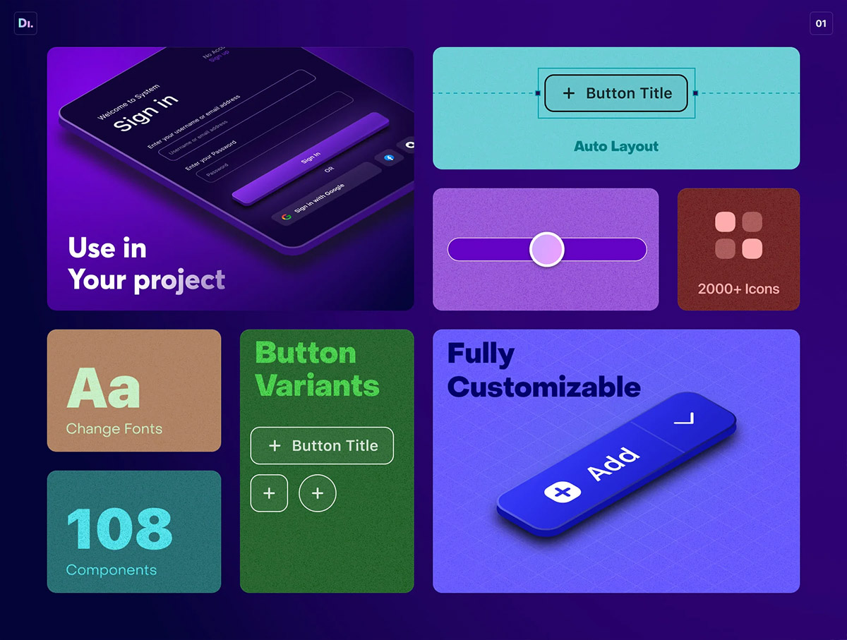 极简的3D按钮UI工具包108个组件figma源文件