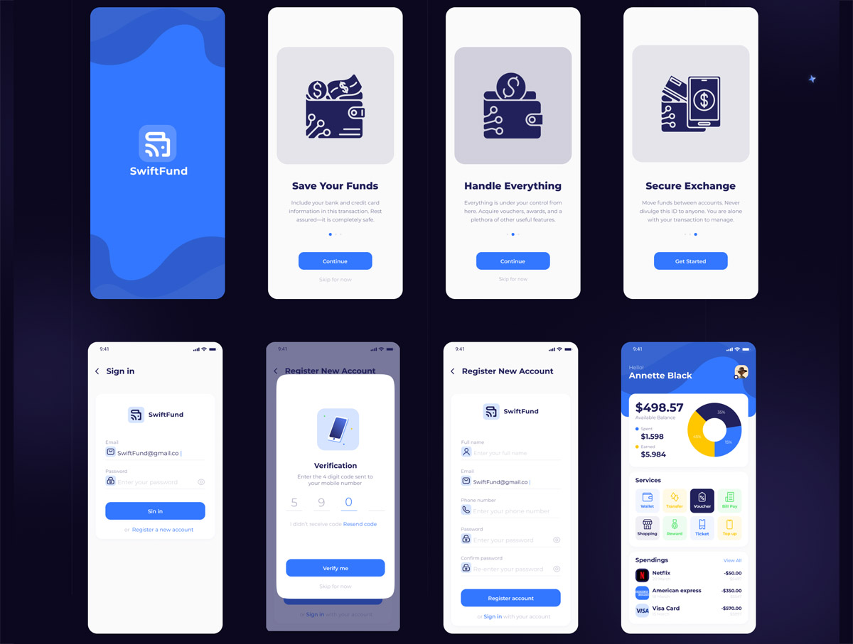 44页简单、干净、现代的设计安全的数字钱包app设计figma源文件