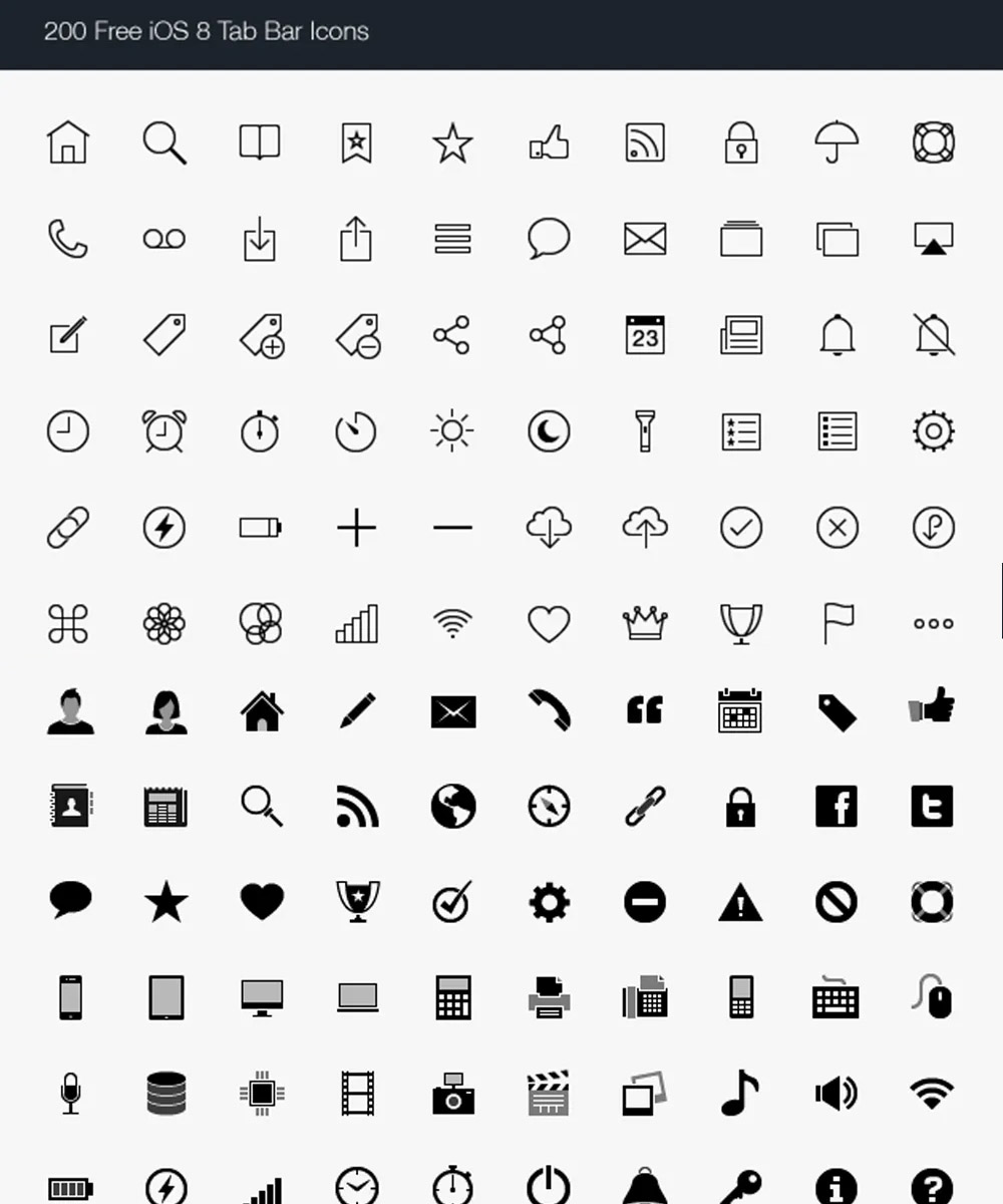 500个免费的iOS标签栏图标PNG格式