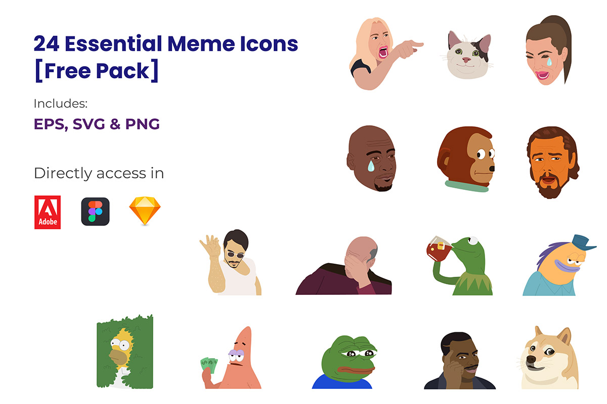 24个免费必不可少的表情包图标PNG / EPS / SVG格式