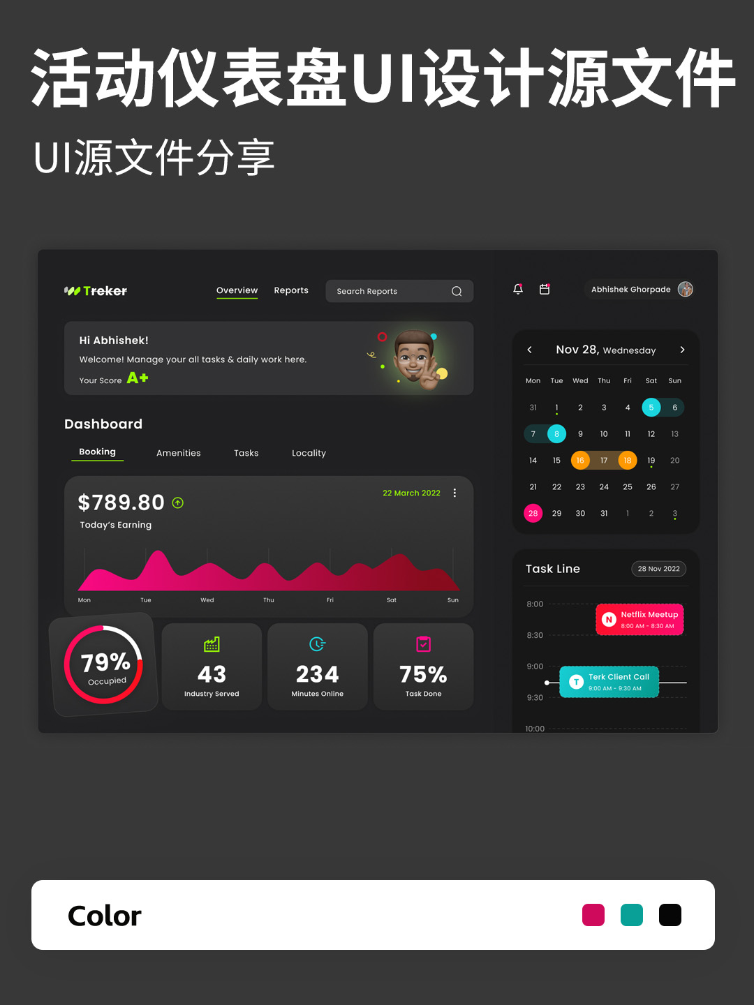明暗40页社交仪表板UI工具包Figma、Sketch 、 XD格式