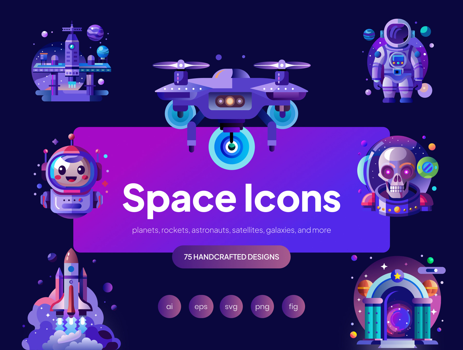 75枚空间矢量icon图标集AI, EPS, PNG, Figma和SVG格式