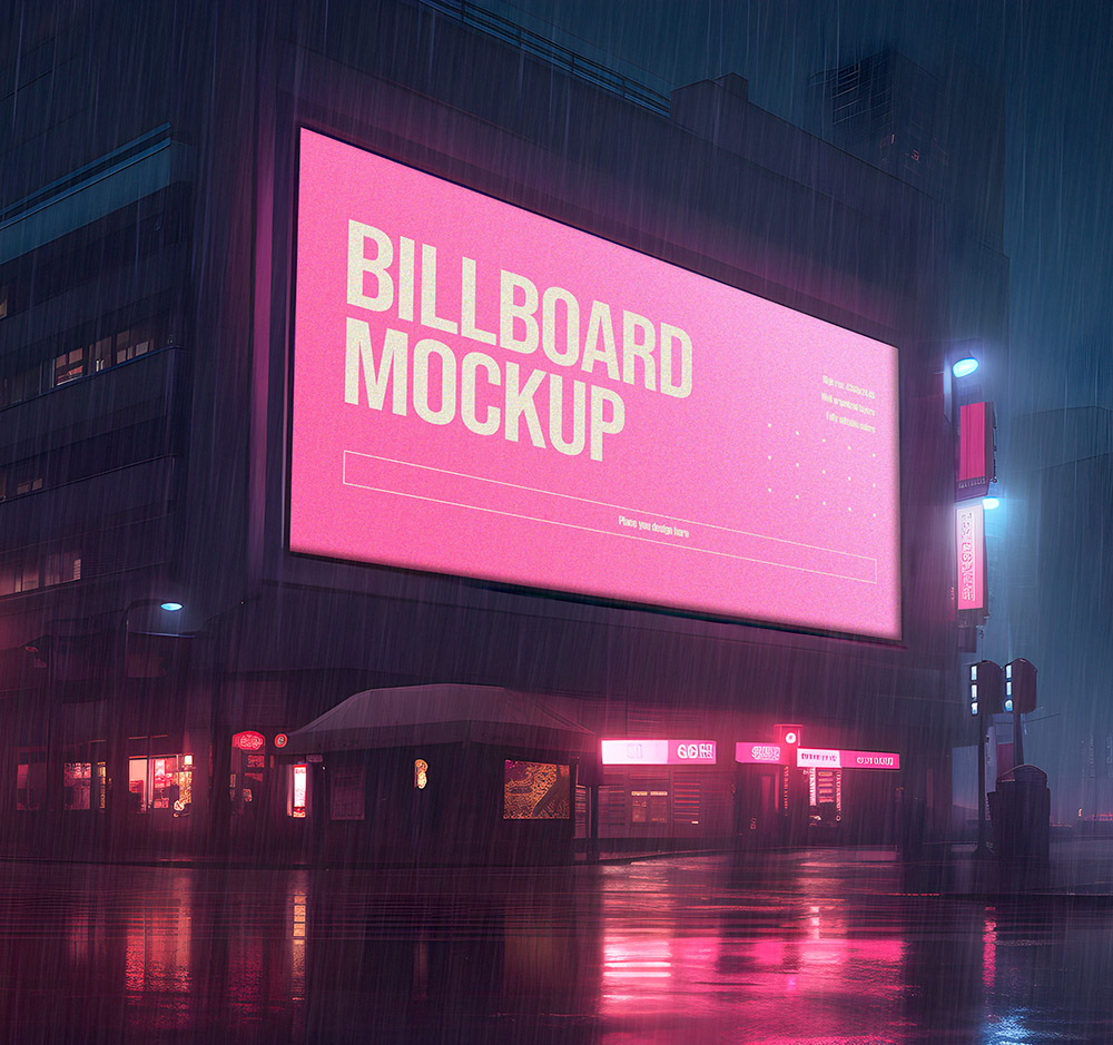 粉红色霓虹灯广告牌模型PSD