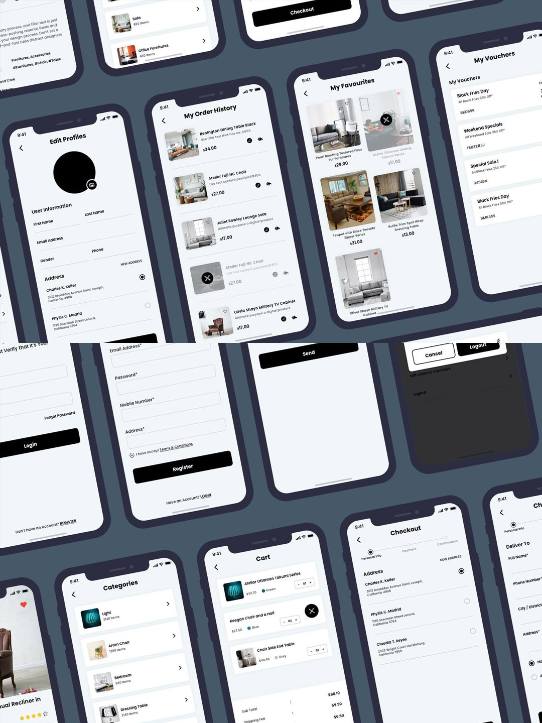 28页高端家具电商APP UI界面设计模板SKETCH,figma源文件