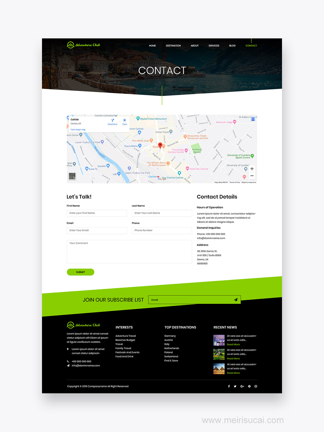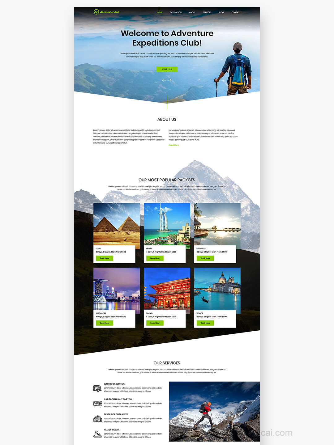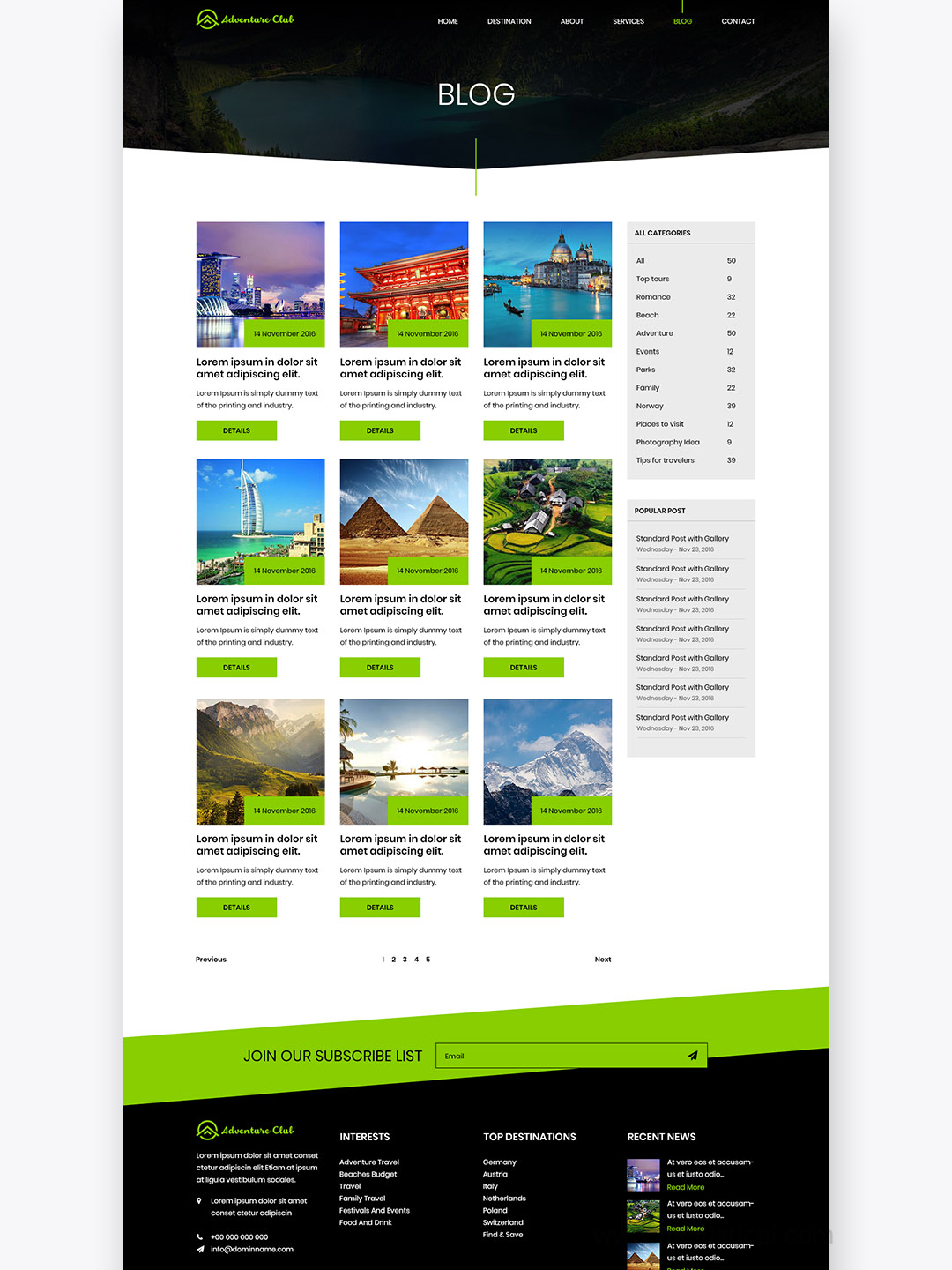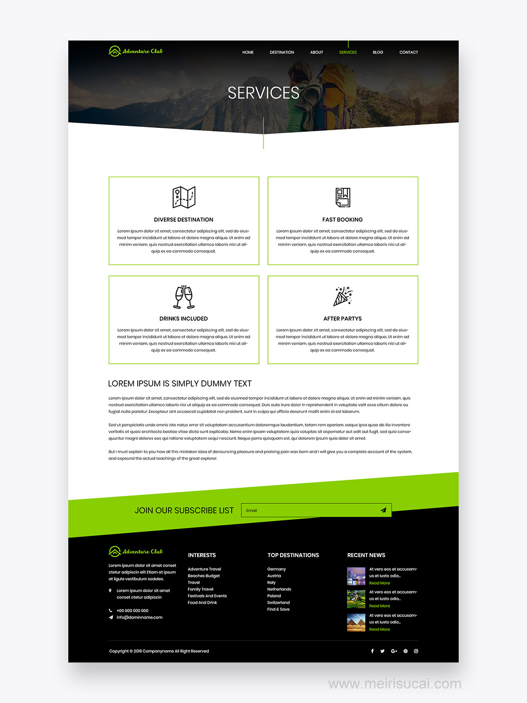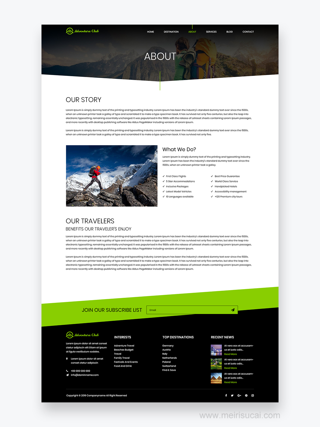 7页旅游网站设计psd源文件
