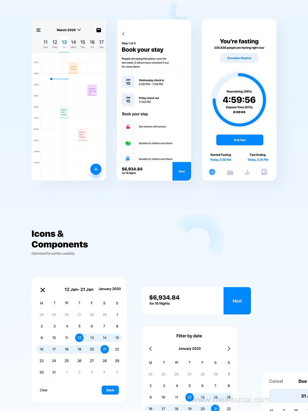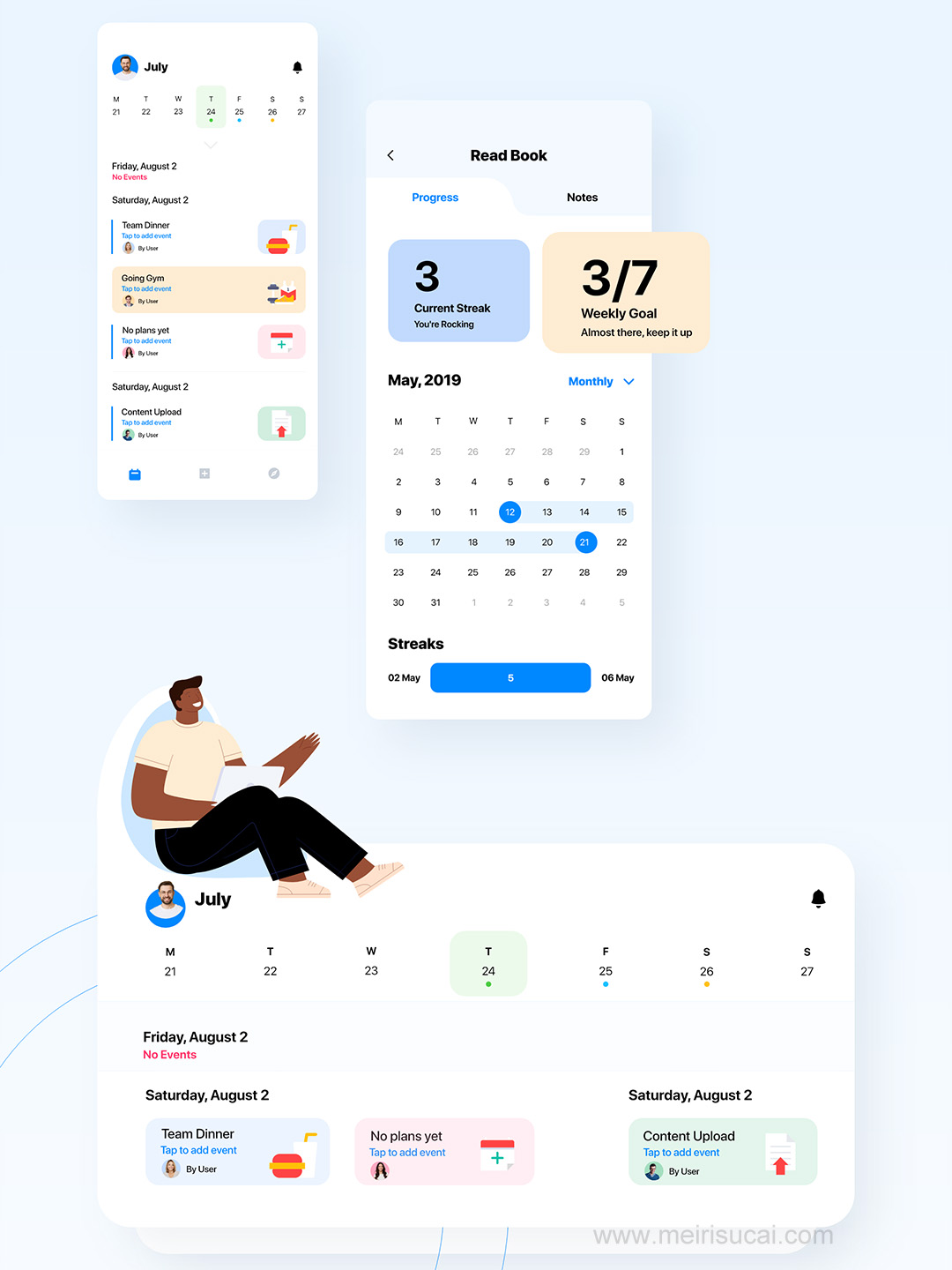 20页APP日历提醒事项记事手账xd/sketch/figma/PSD源文件