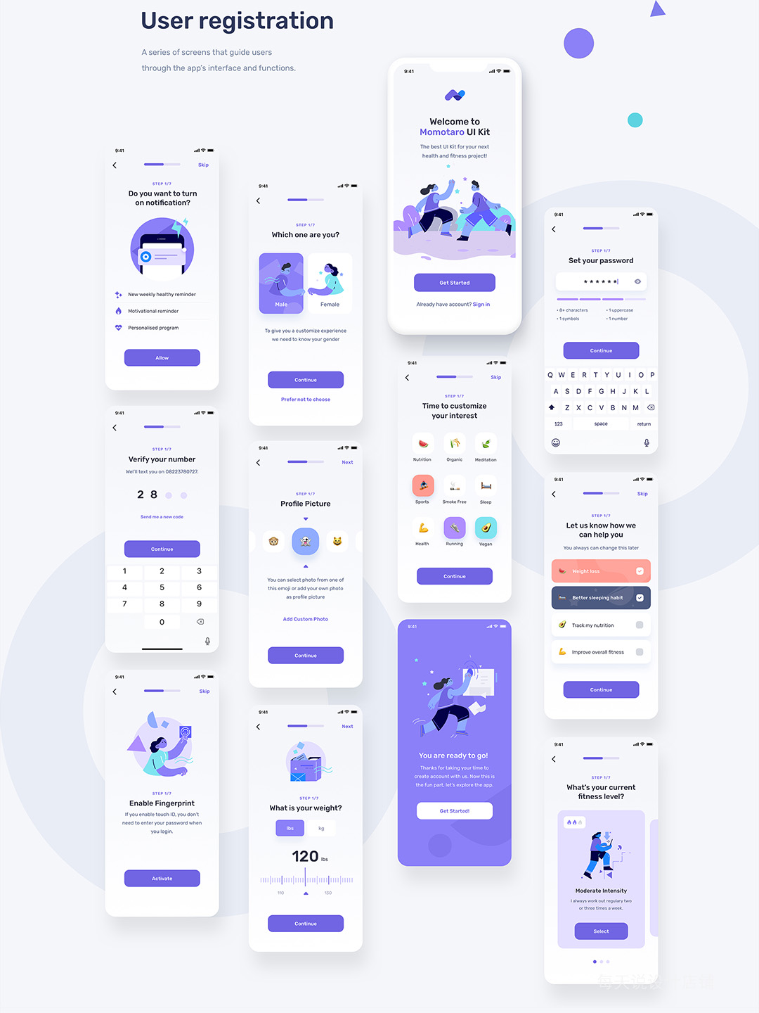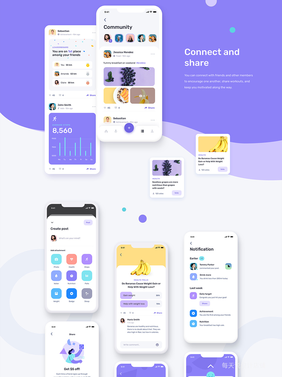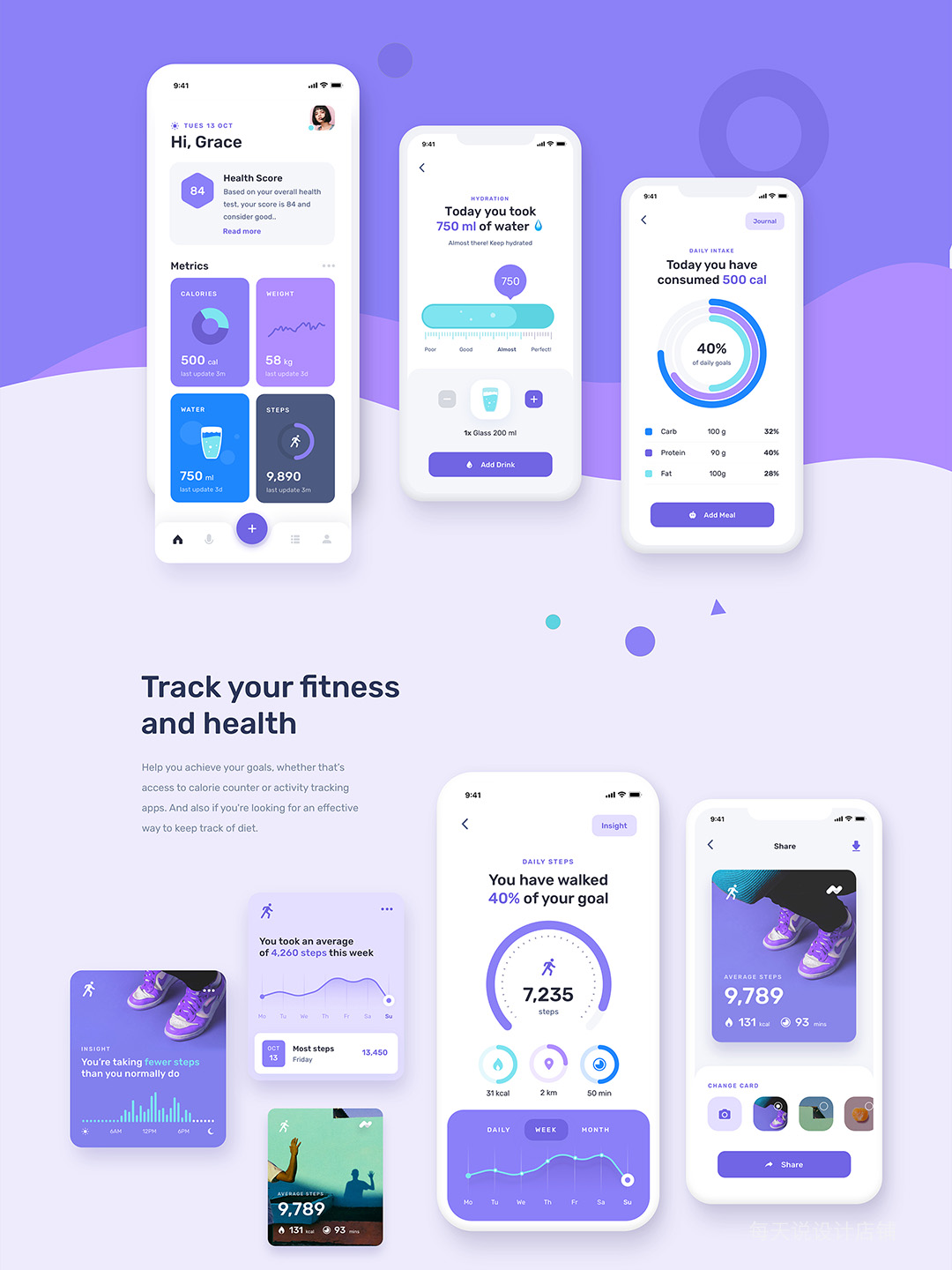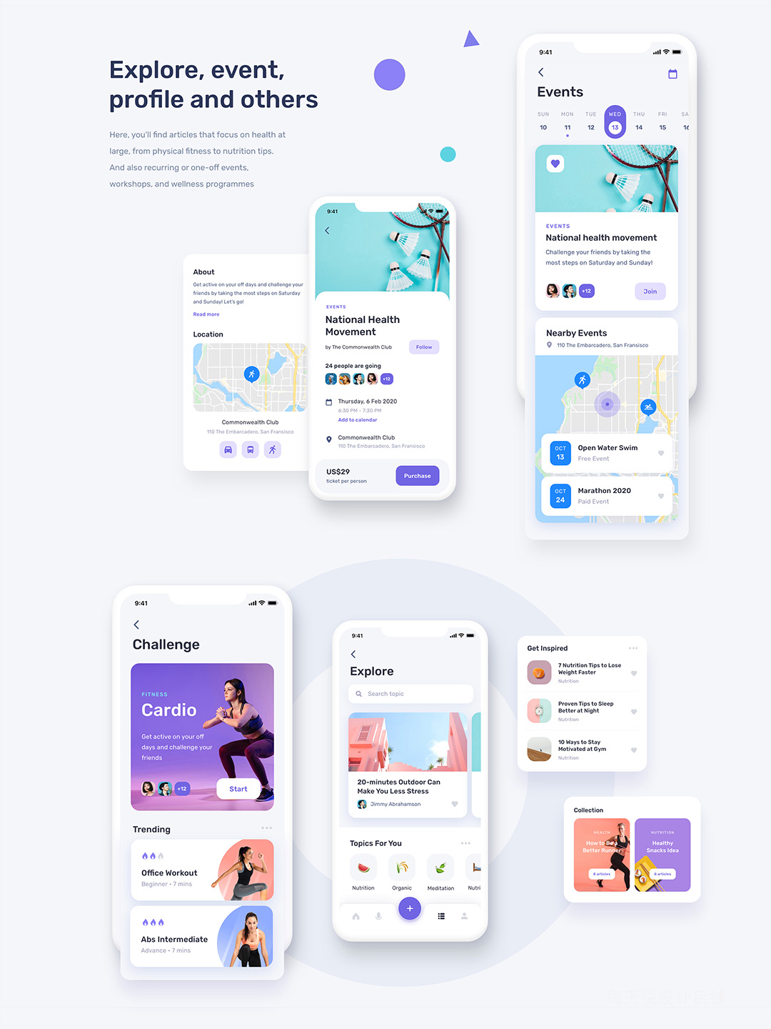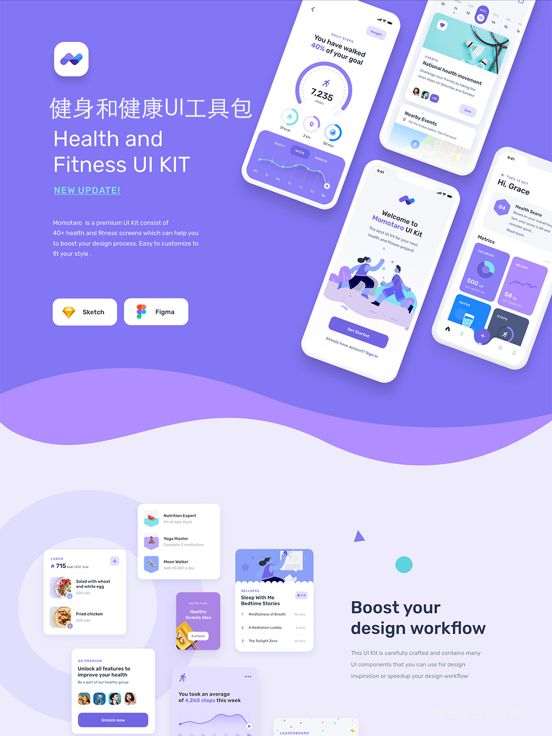 时尚清新40页健身和健康UI设计figma、sketch源文件
