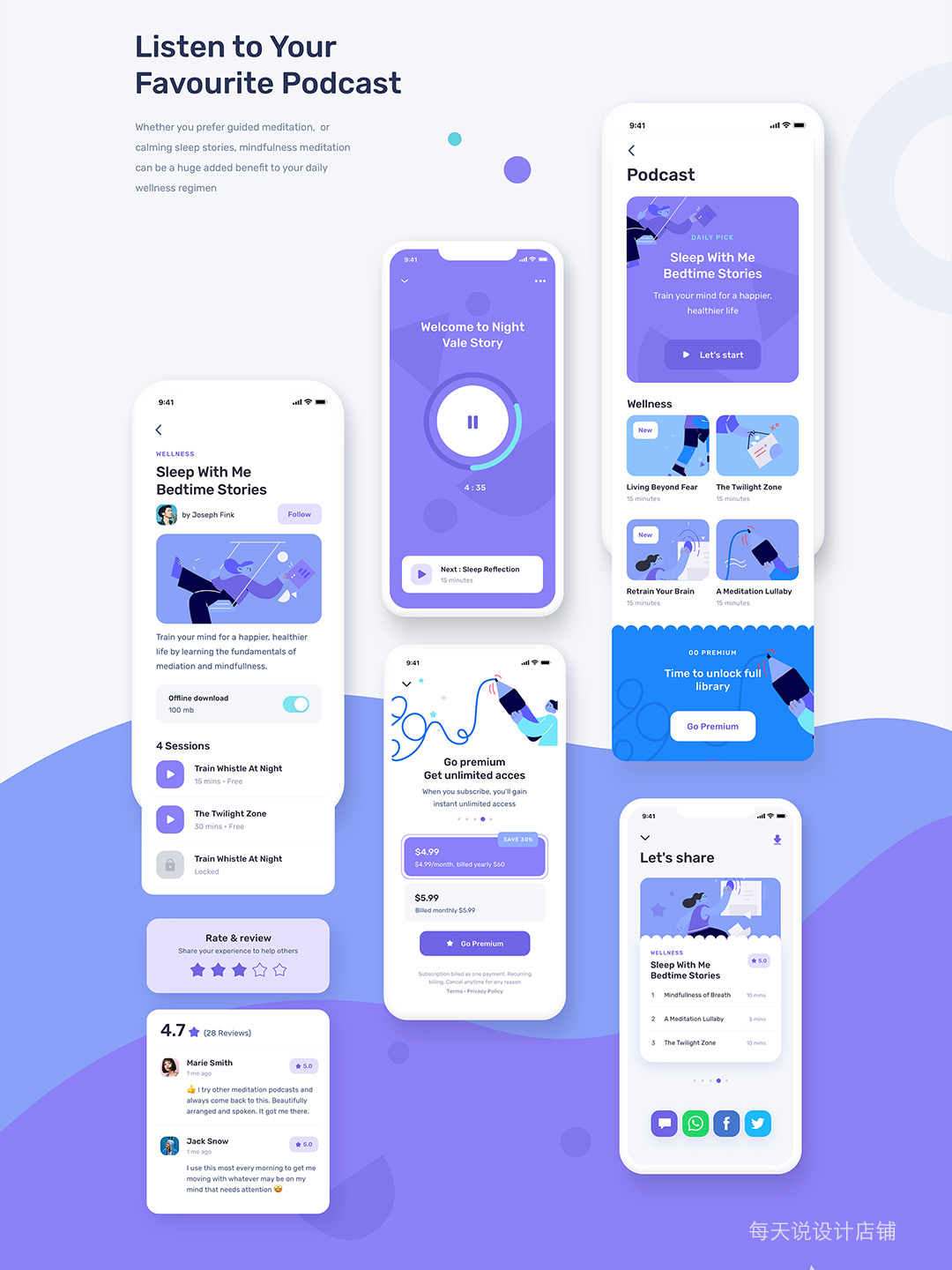 在线学习App。包括 50 多页和矢量插图。Figma, Sketch 文件