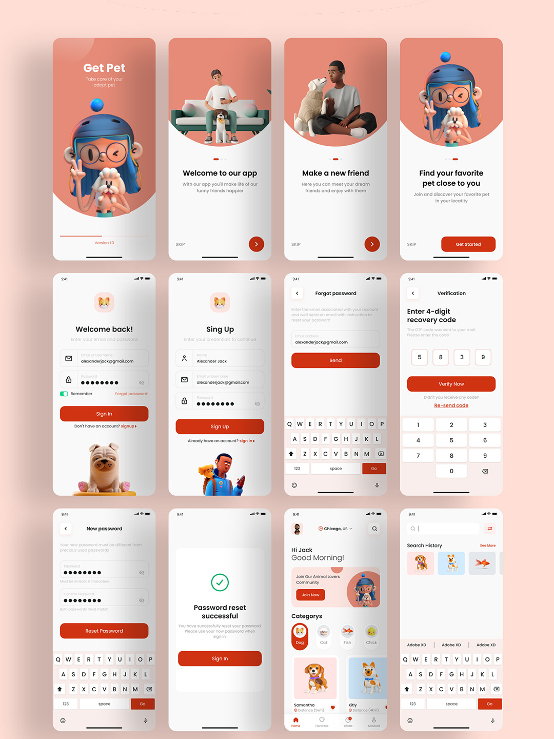 55页宠物领养App设计sketch,xd,figma,psd格式
