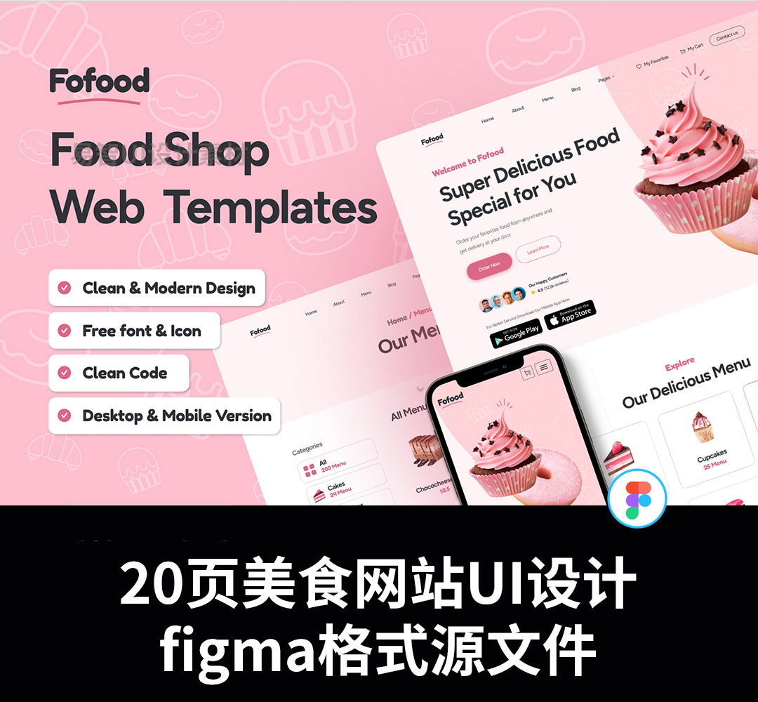 20页美食,甜品网站设计UI源文件figma格式可以编辑
