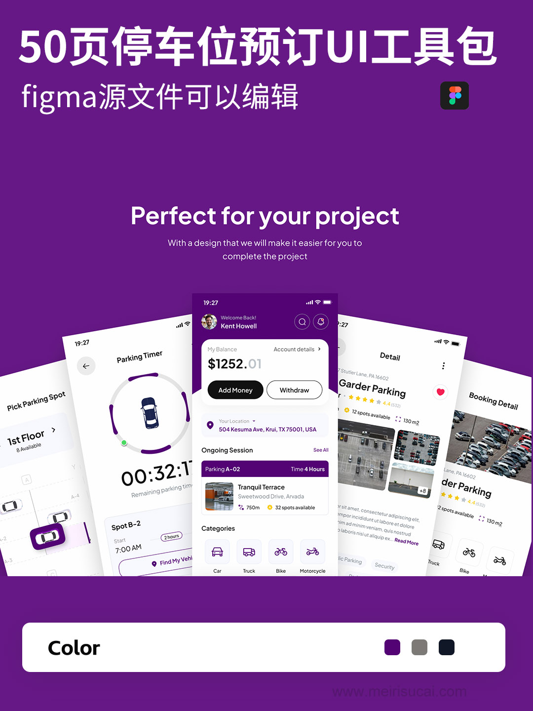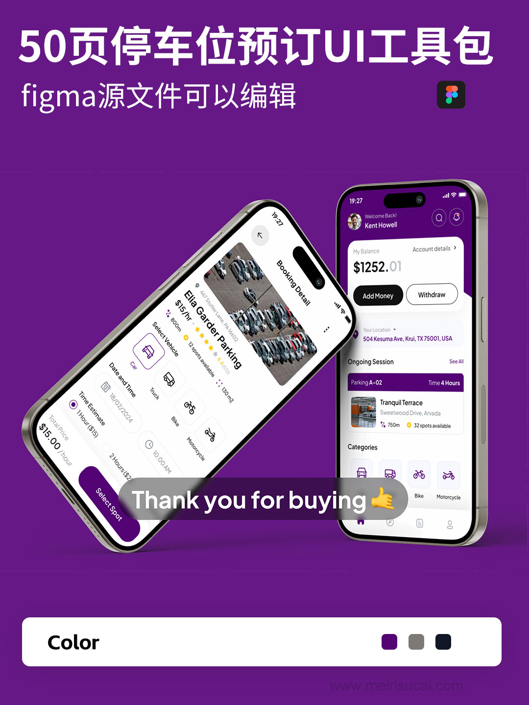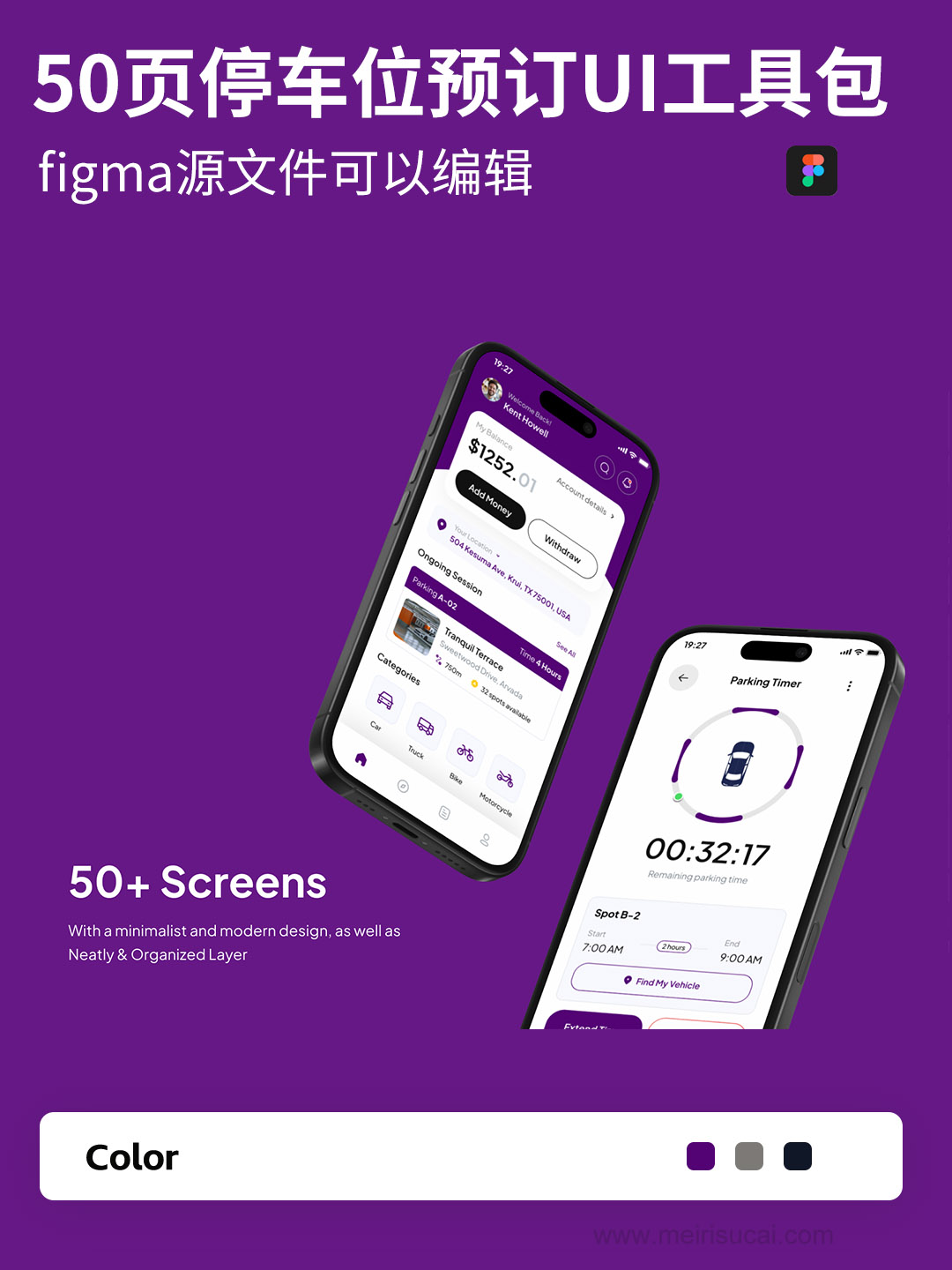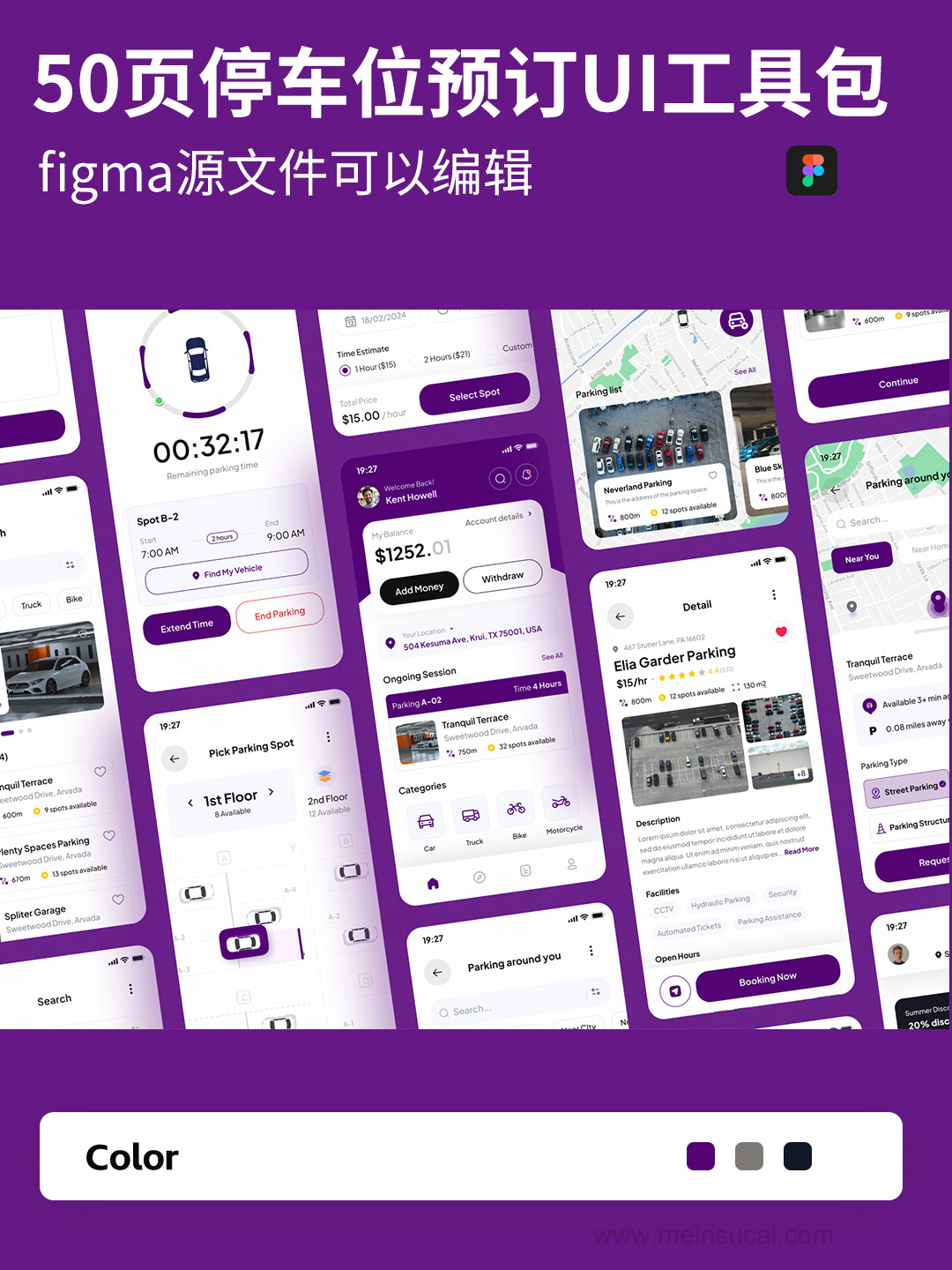 50页停车位预订应用程序UI工具包app设计figma源文件