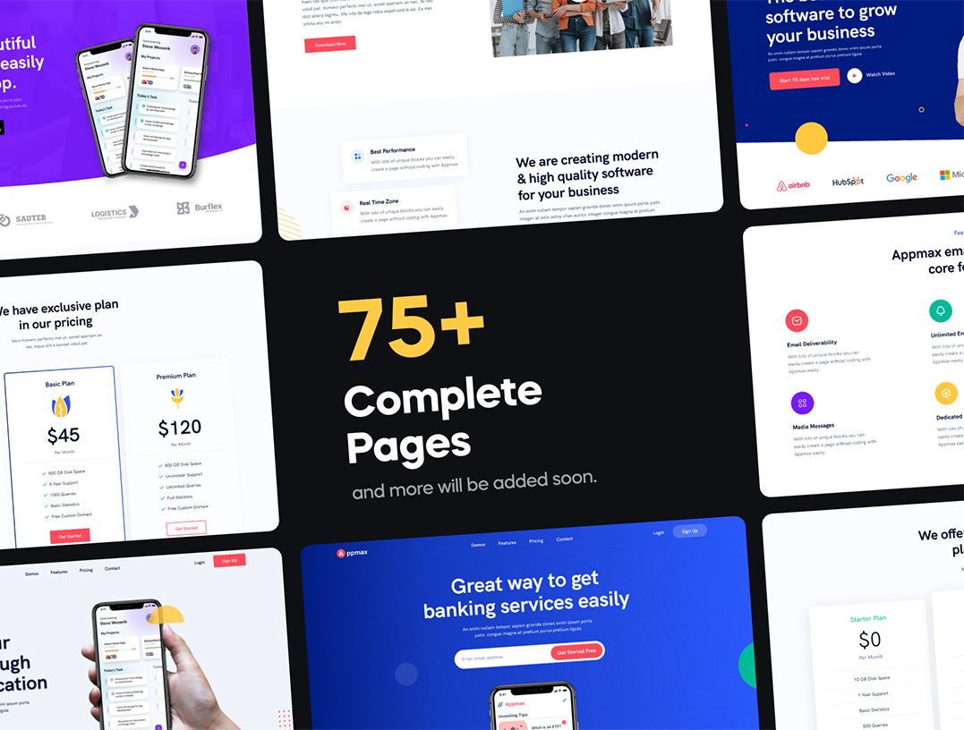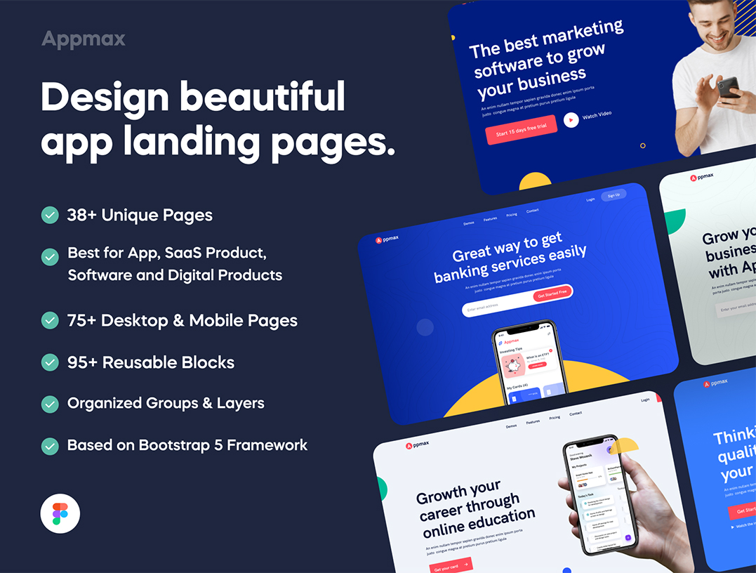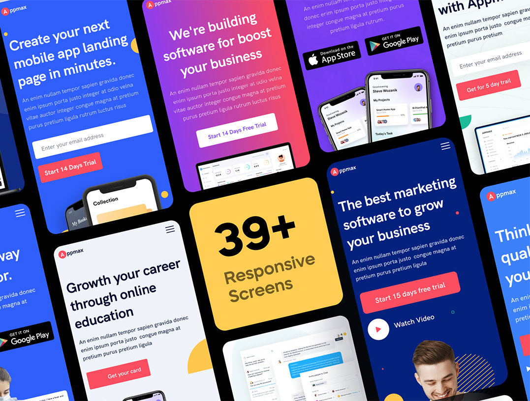 响应式10个首页,38个内页SaaS,软件产品网站设计fimga源文件