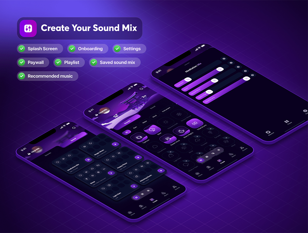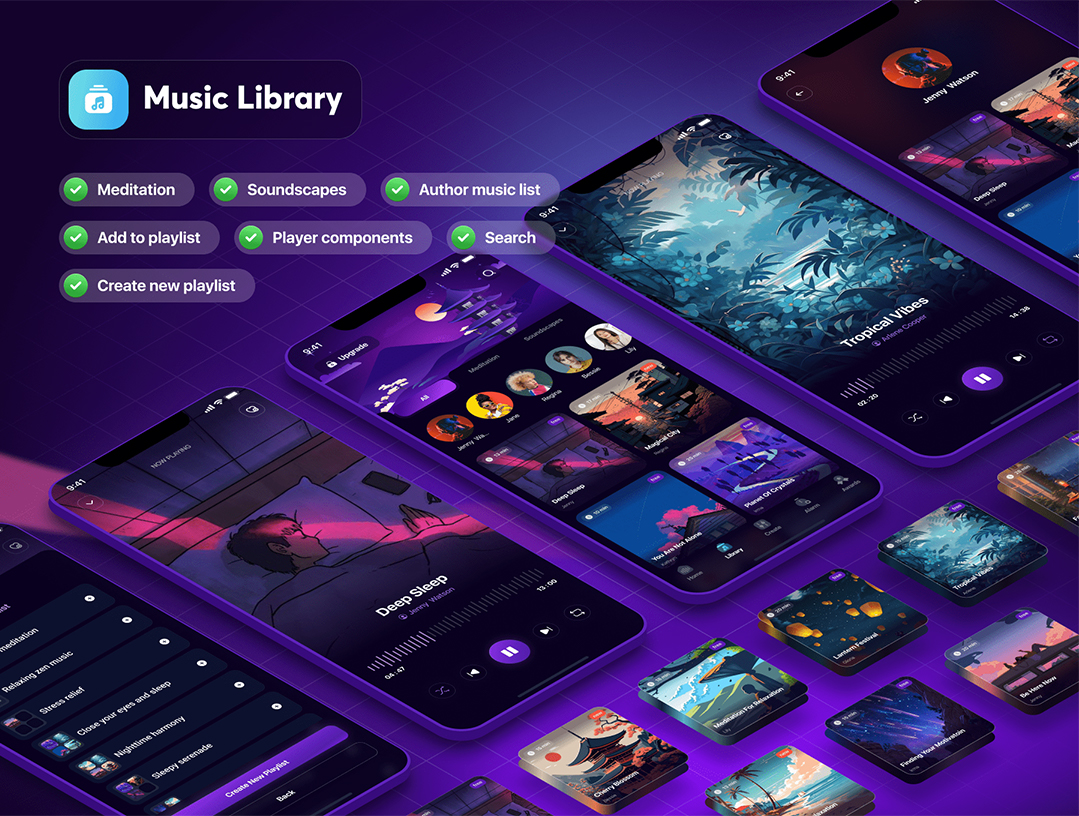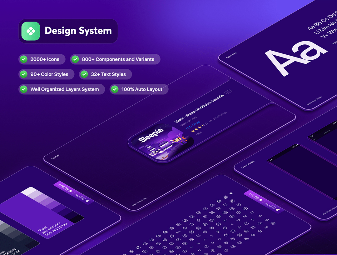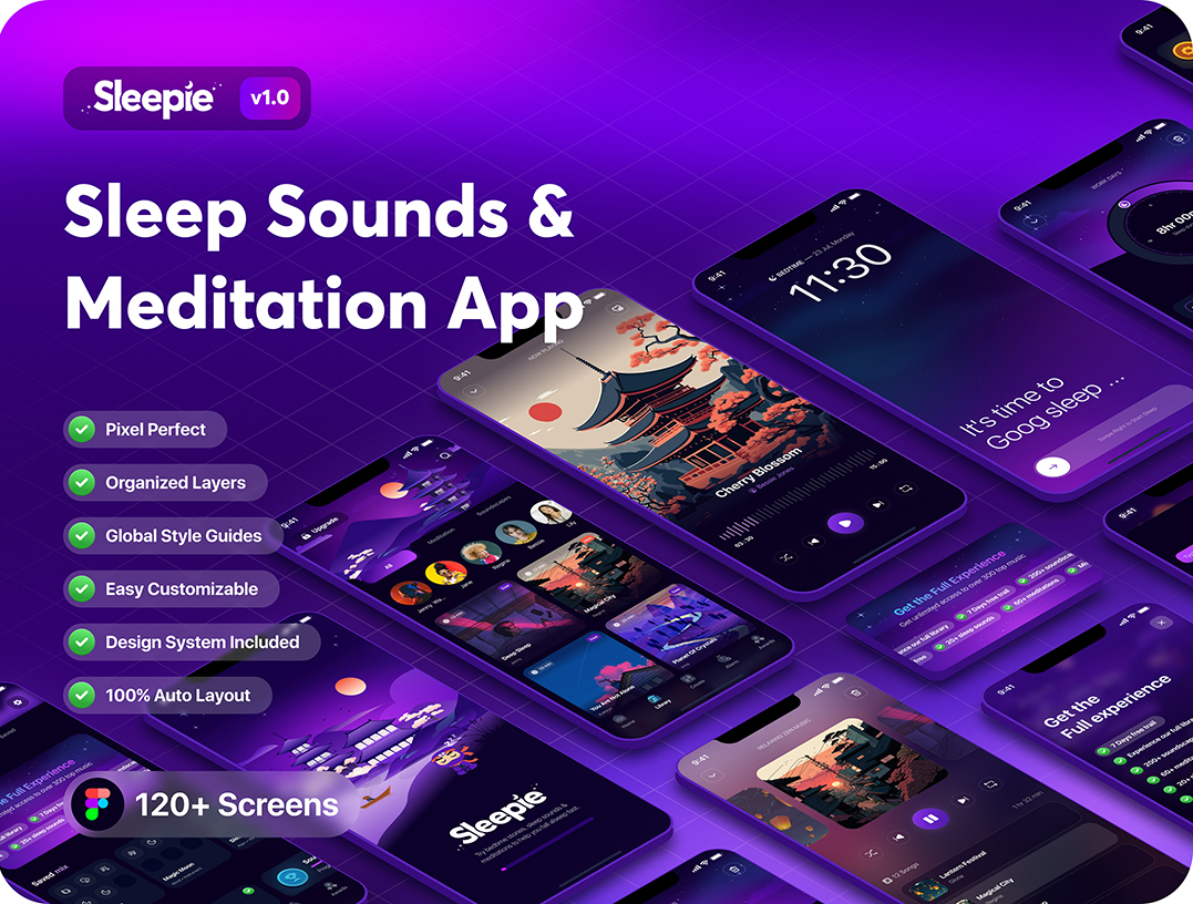 120页800个组件睡眠声音和冥想app设计UI素材figma源文件