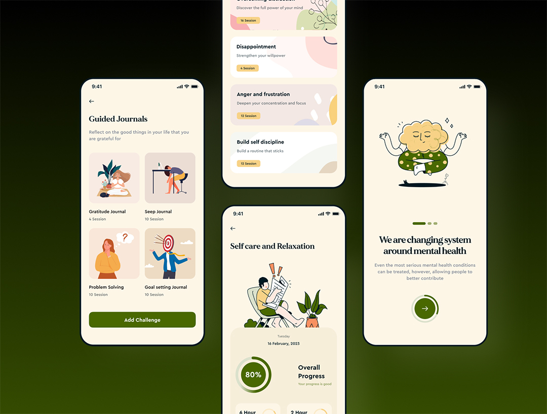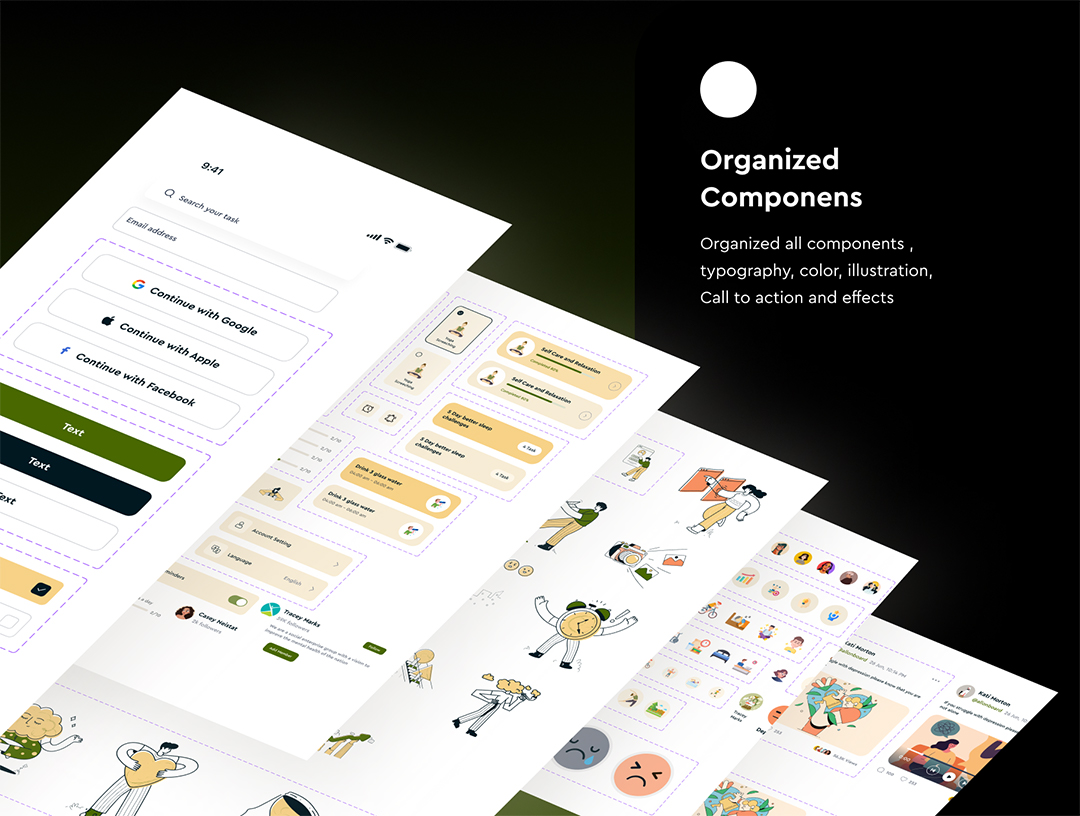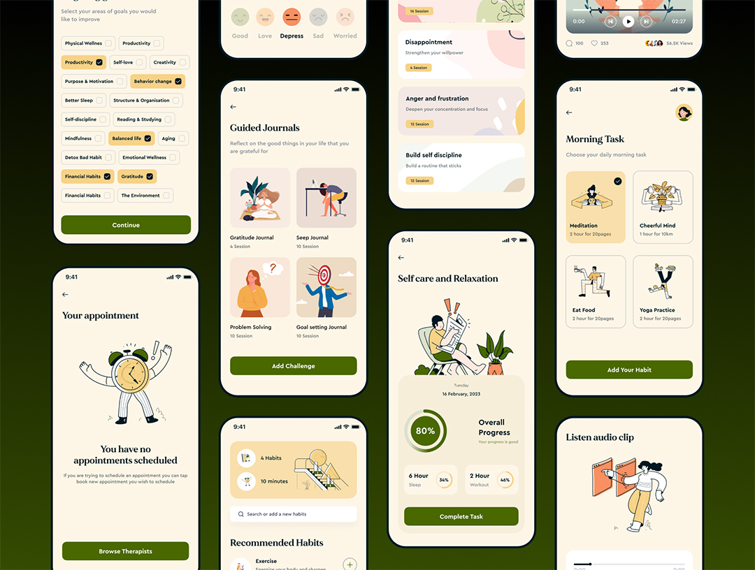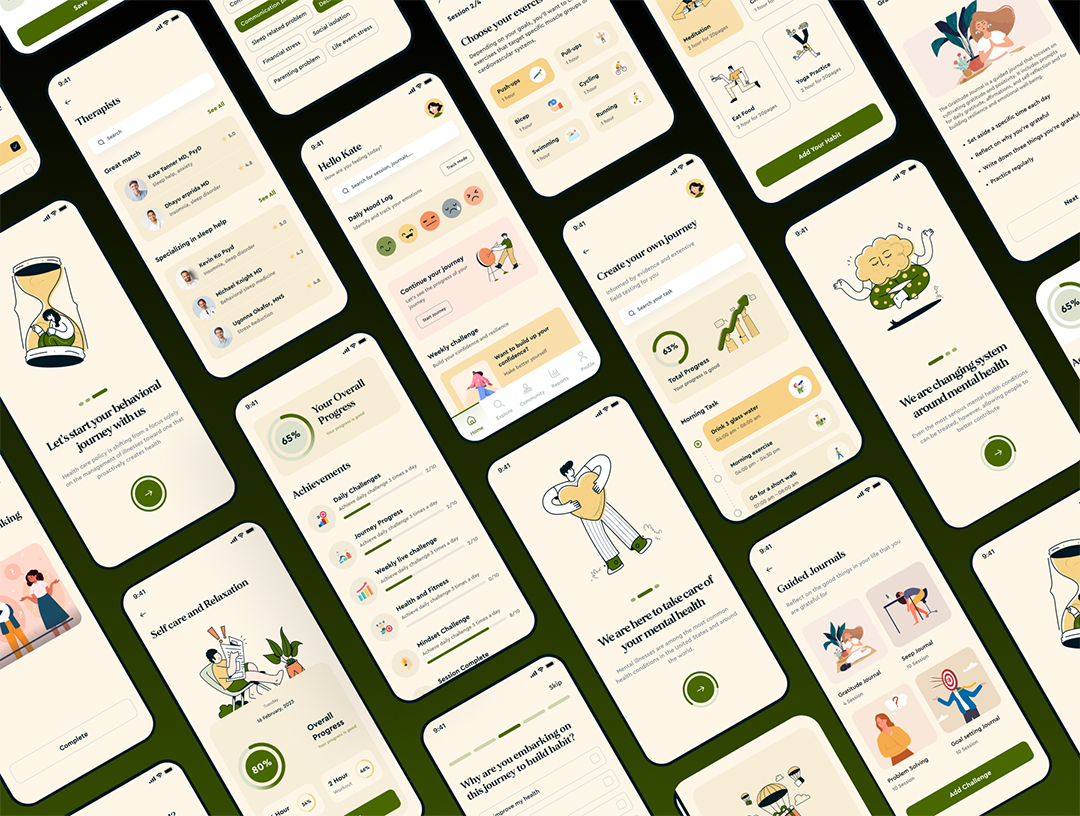 70页300个图标AI心理健康APP移动应用UI设计figma源文件