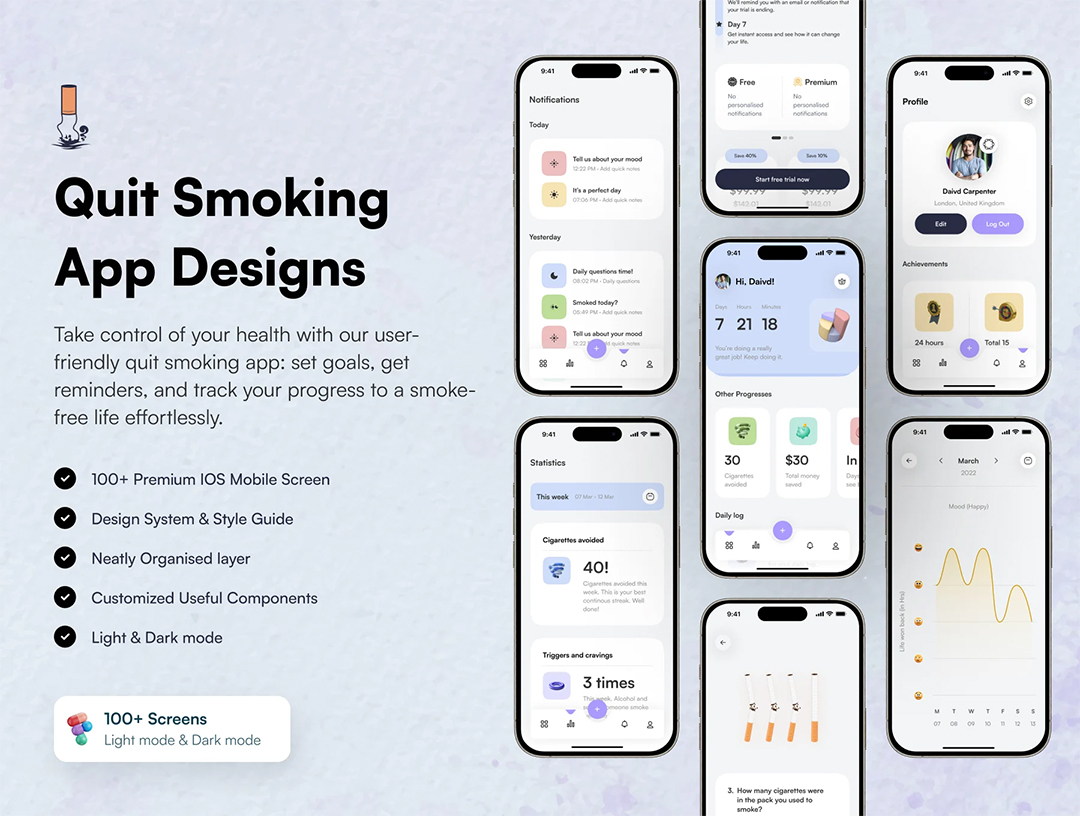 100页明暗戒烟app设计figma源文件