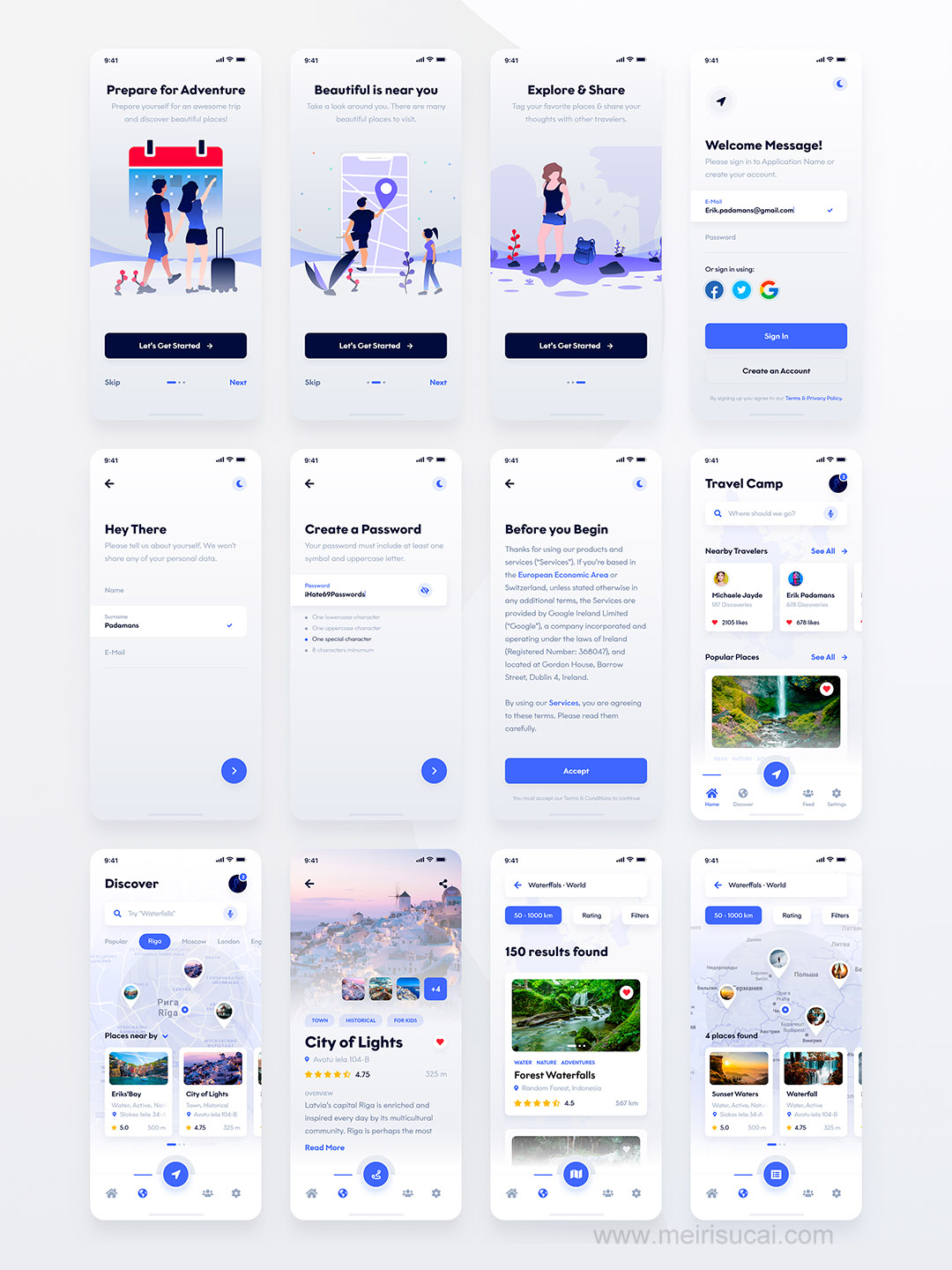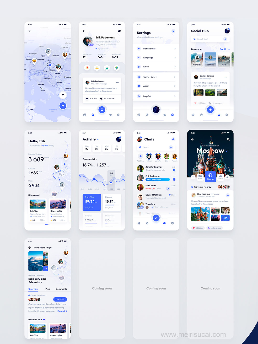 43页旅行,航班和酒店APP设计Figma、Sketch 、 XD、studio格式