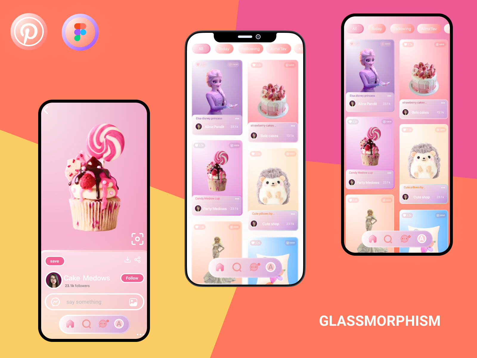 Pinterest玻璃拟态app应用程序重新设计figma源文件
