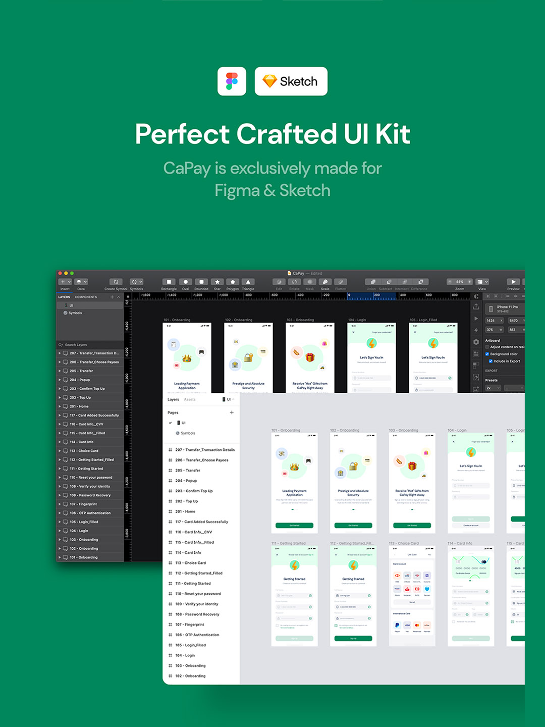 68页(iPhone X分辨率)数字钱包app设计素材Figma、Sketch源文件