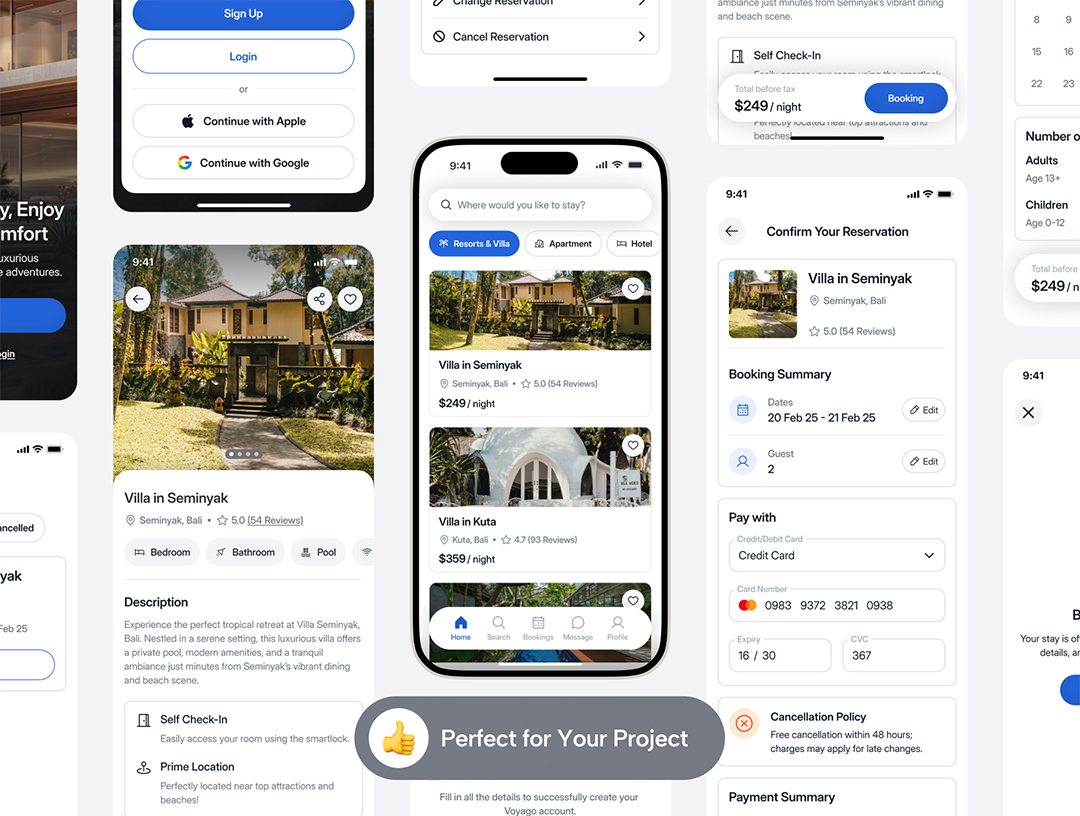 40页iPhone 11 Pro Max尺寸旅游-预订住宿UI设计figma源文件