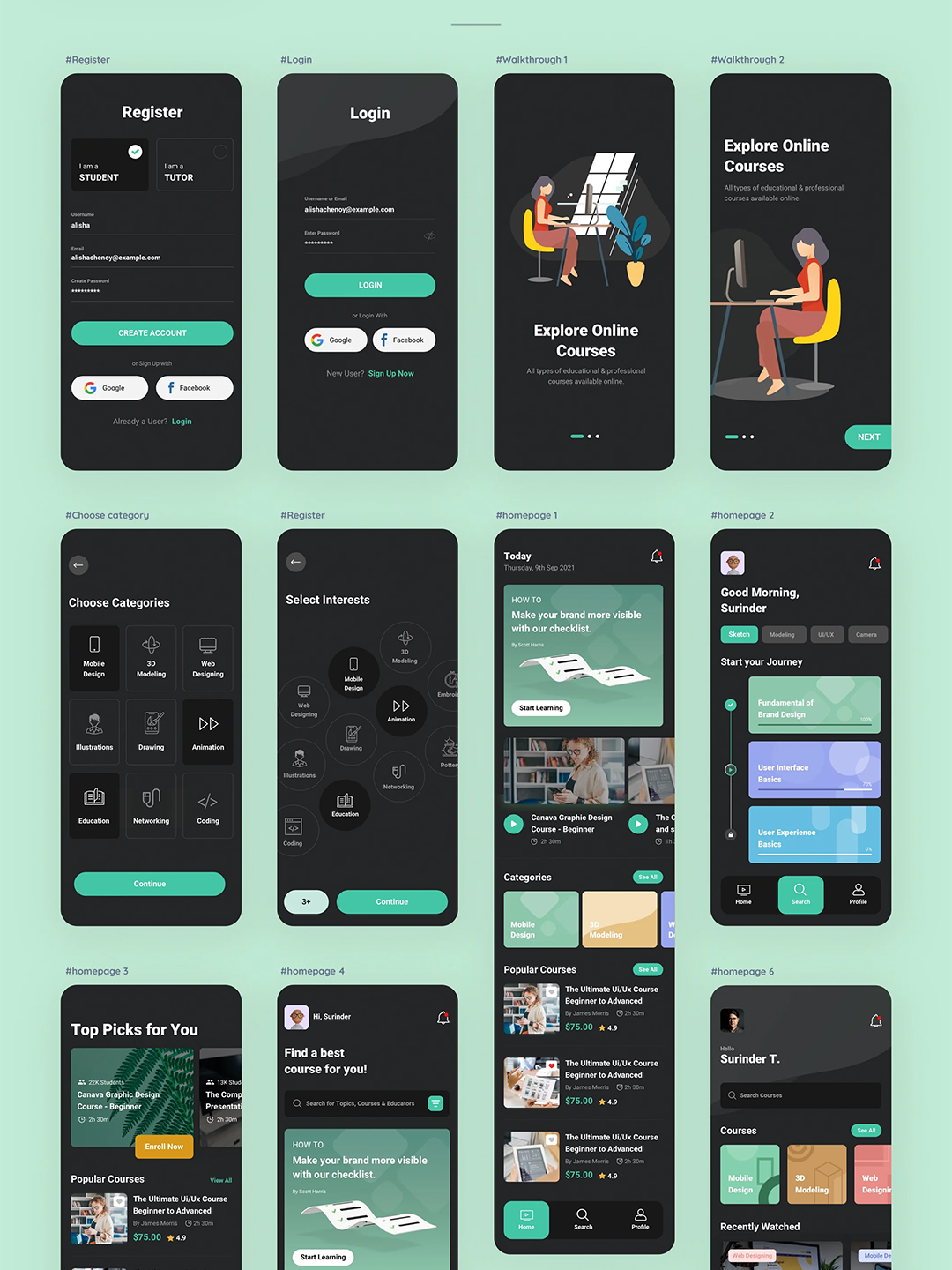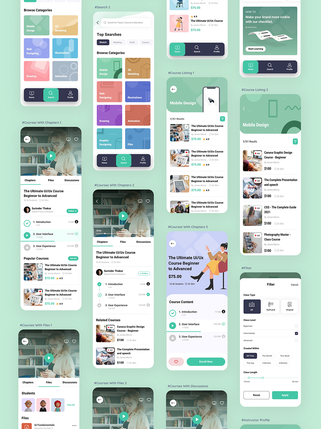 70屏幕,求职找工作、招聘软件APP UI界面设计资源模板fig,sketch,xd三端