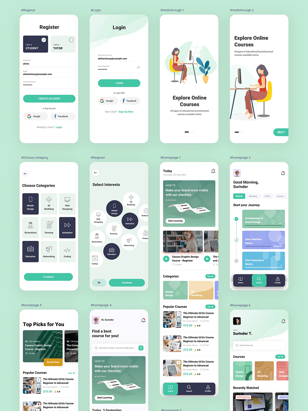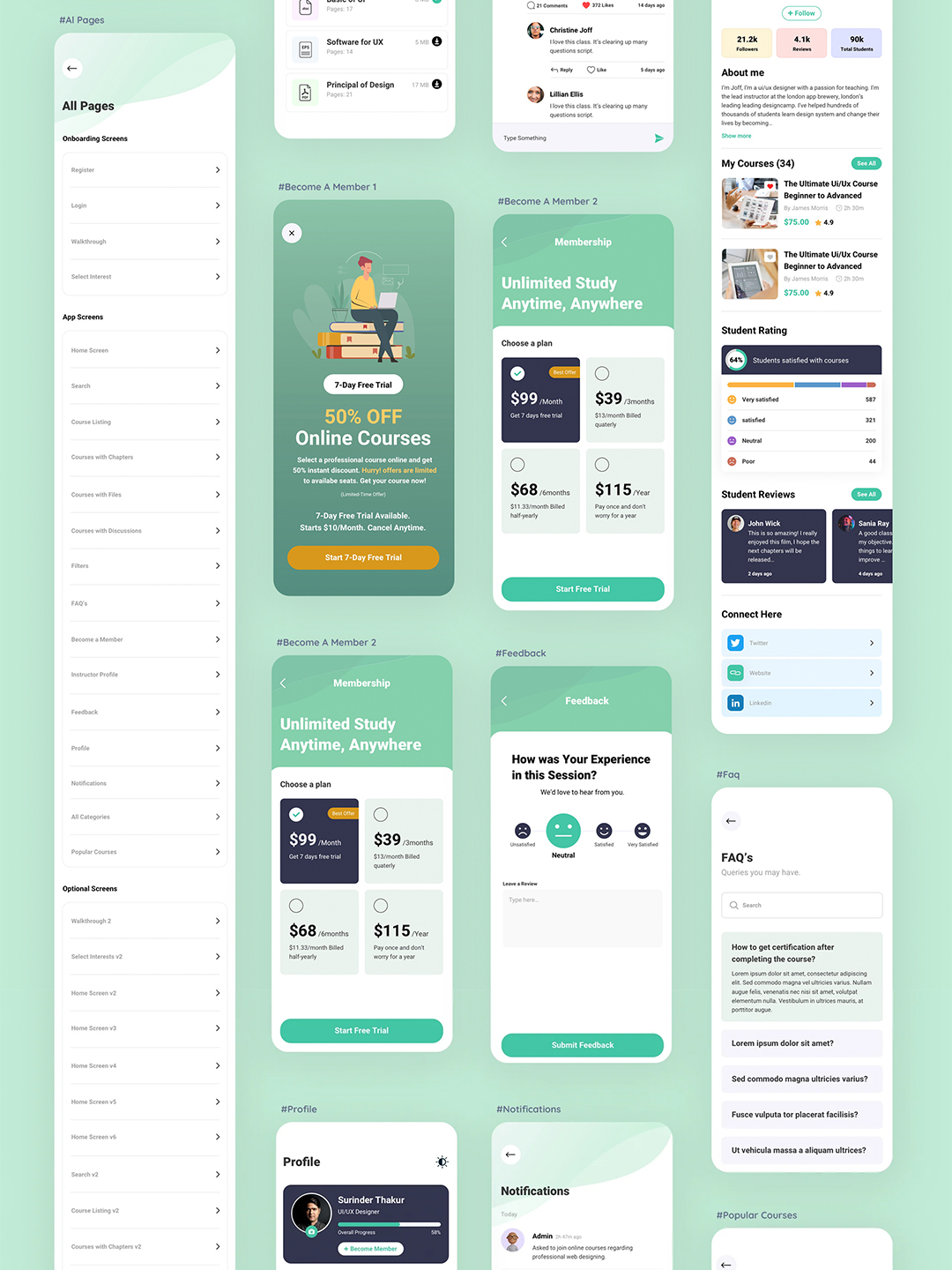 50页的插画风电商APP UI Figma, Sketch, Illustrator源文件