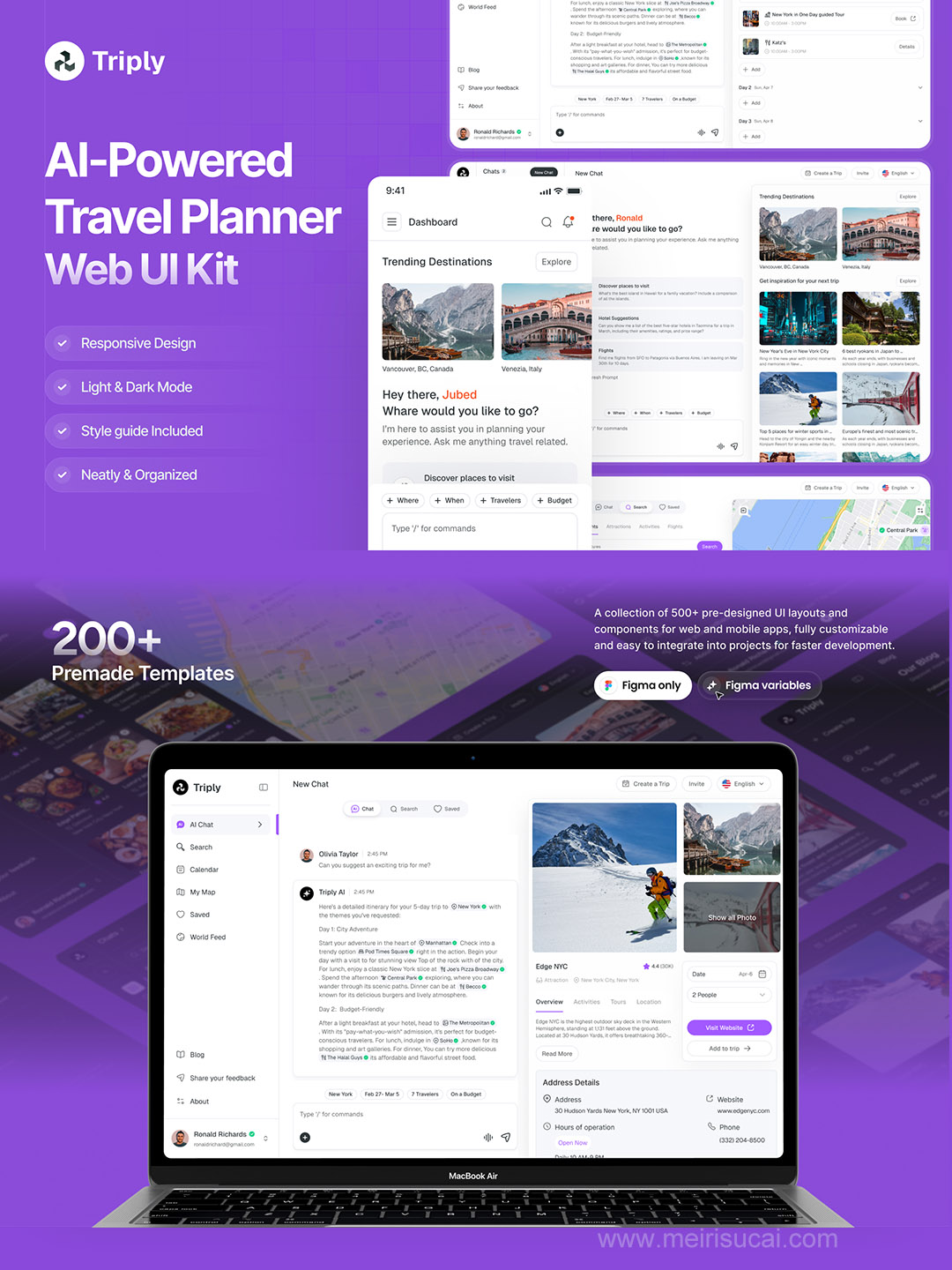 200页AI人工智能旅游规划师用户界面UI套件figma格式