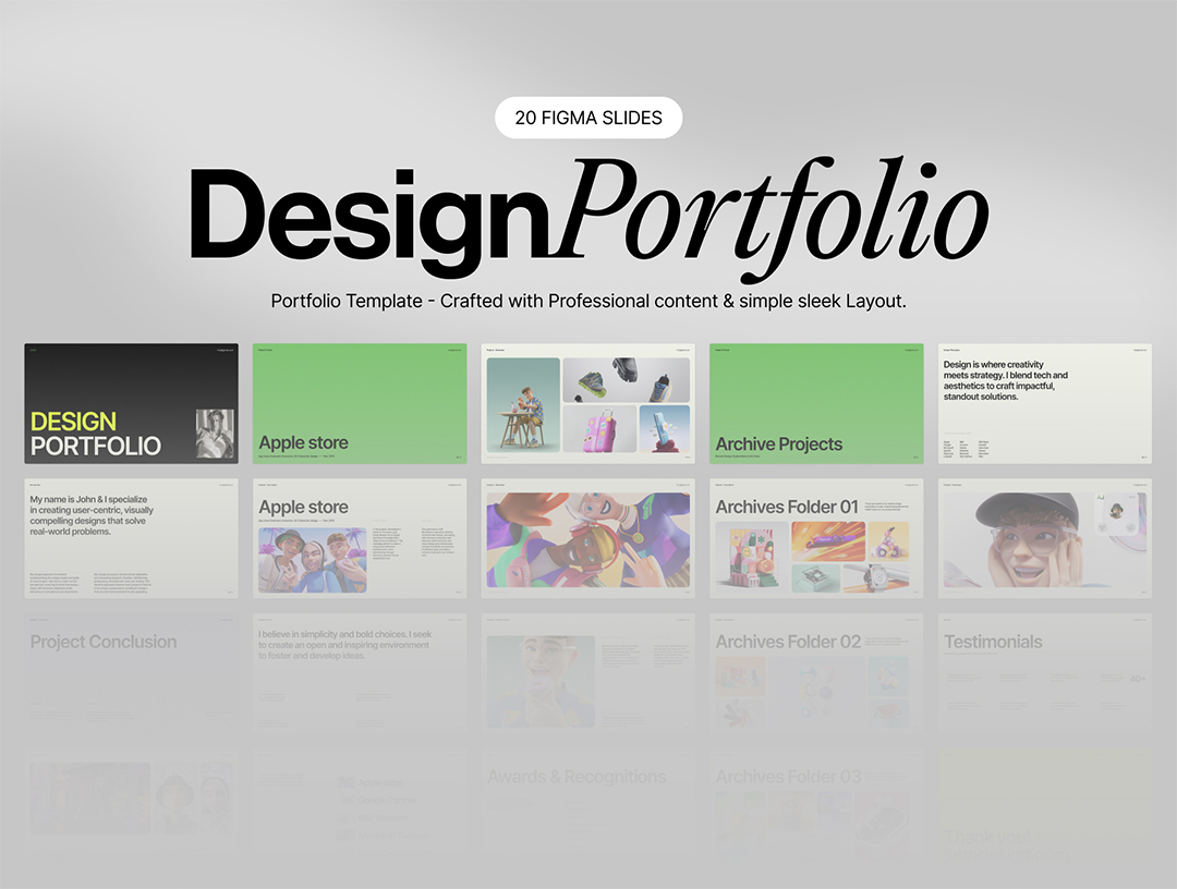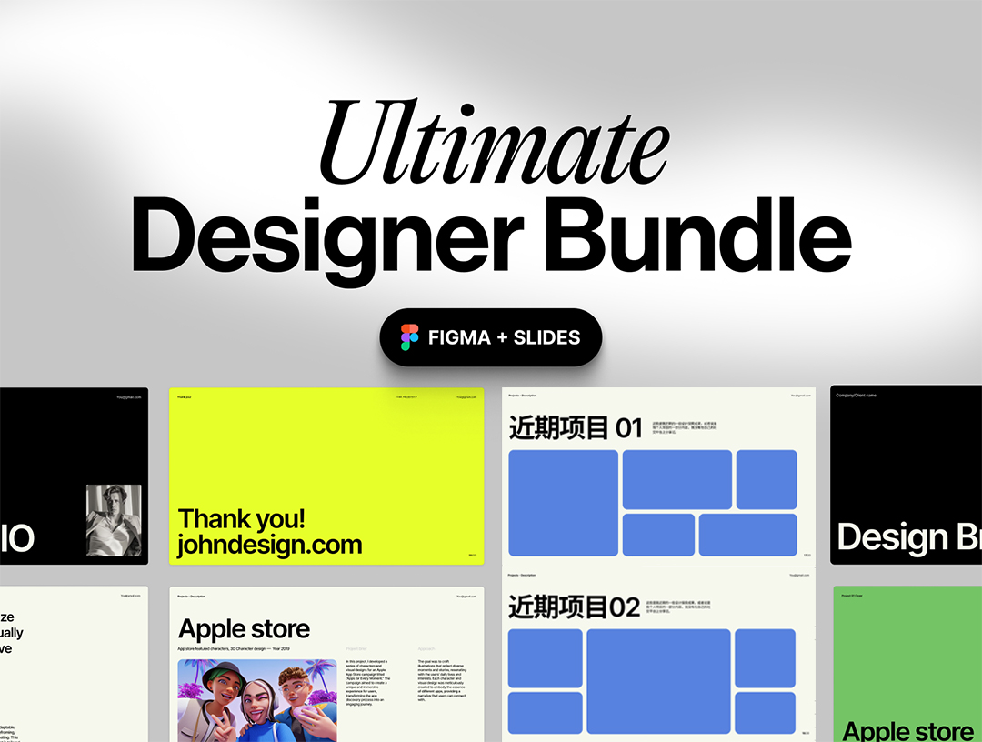 中英双语明暗各20张Figma格式作品集模板幻灯片(不含作品图片)
