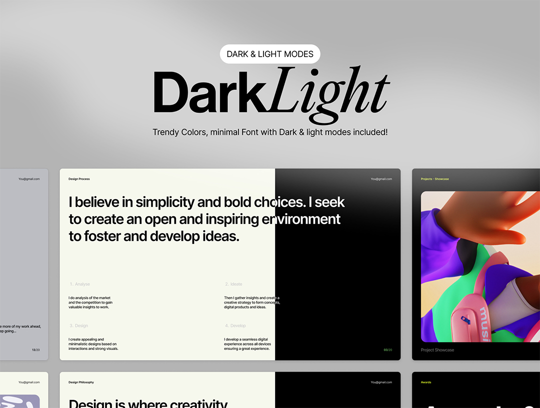 30页明暗作品集设计Figma、Sketch、PPT、keynote格式