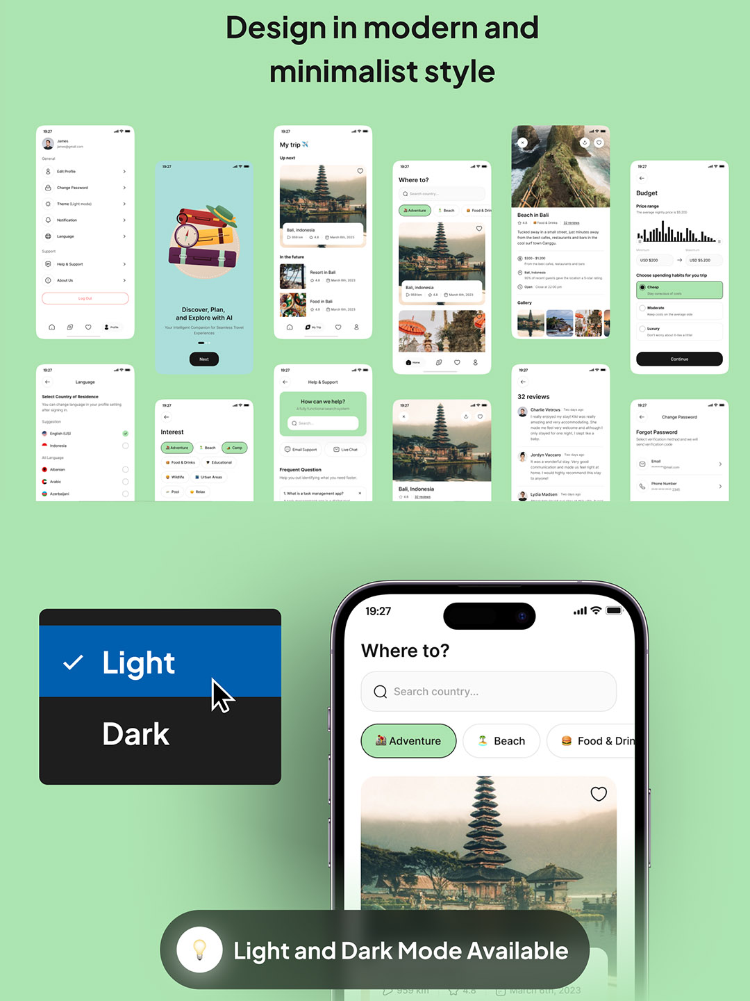 明暗各35页AI旅行规划师APP应用程序UI设计figma源文件