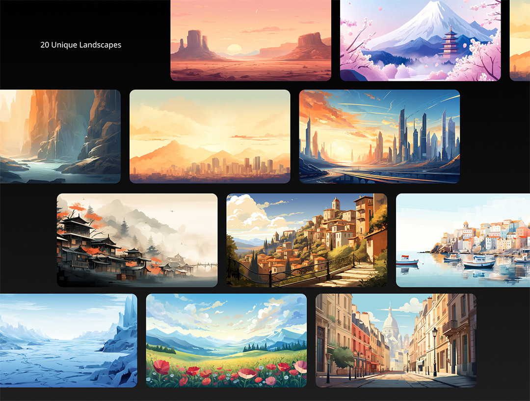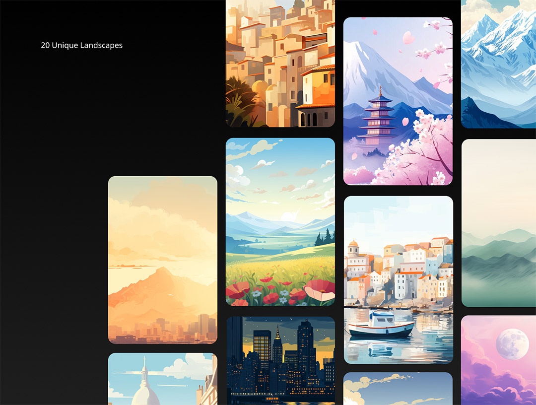 20个独特的绘画风格景观psd,png格式