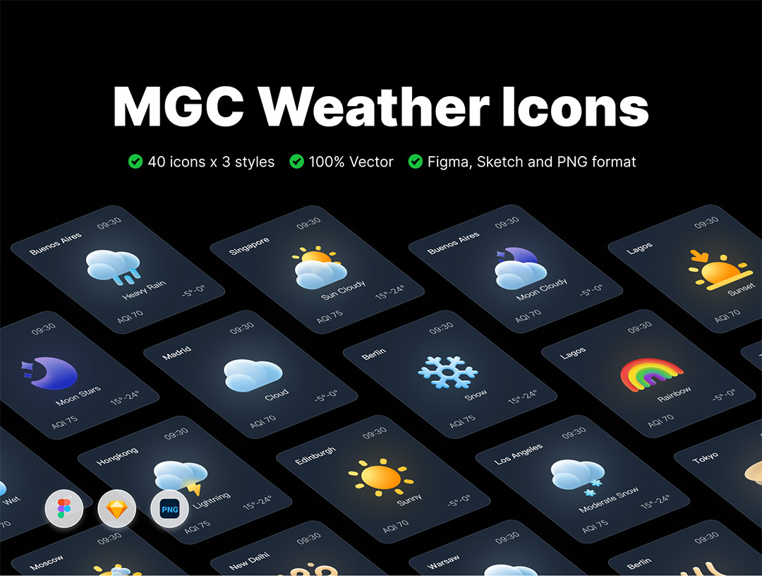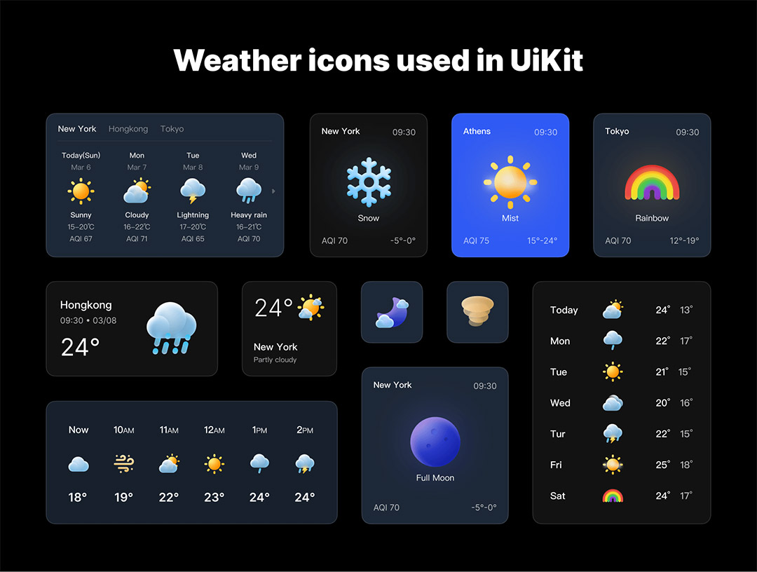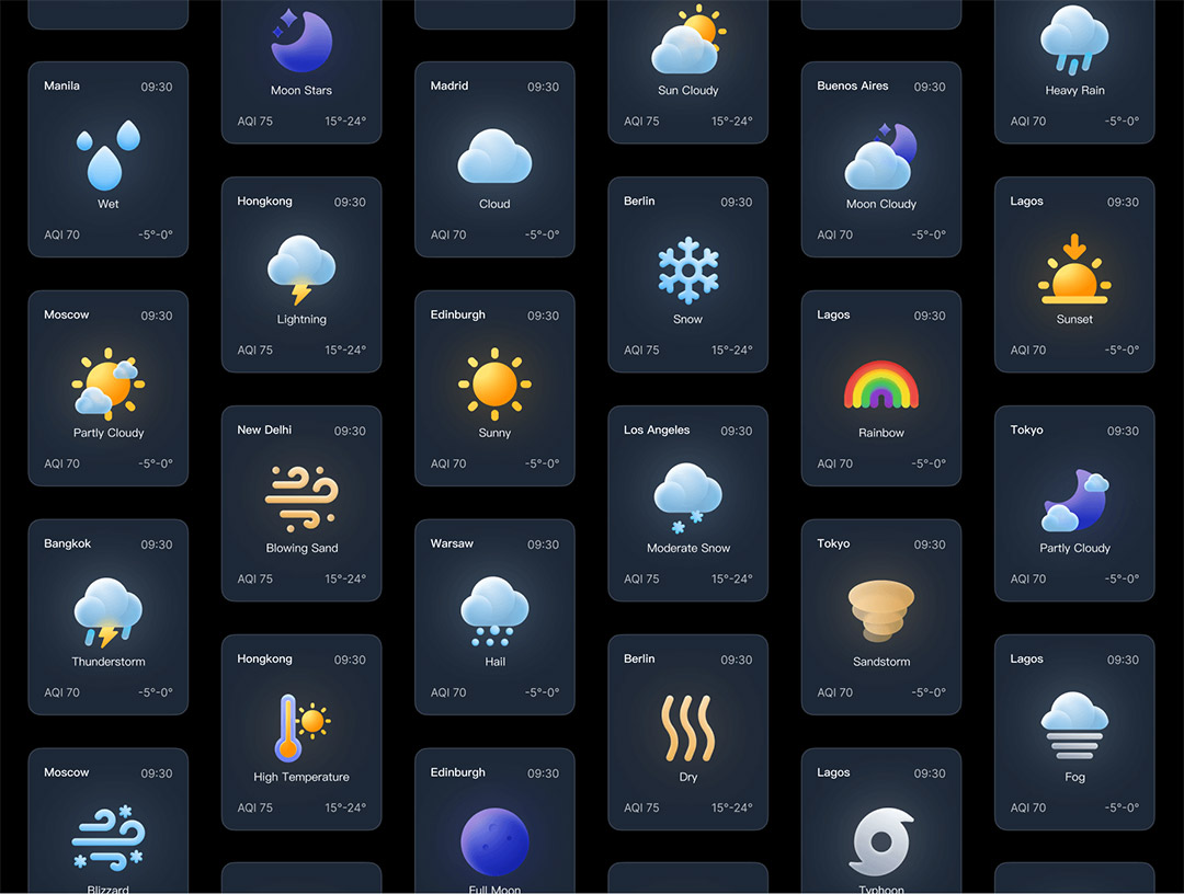 120个高品质的天气图标和天气界面设计Figma、Sketch、Png格式