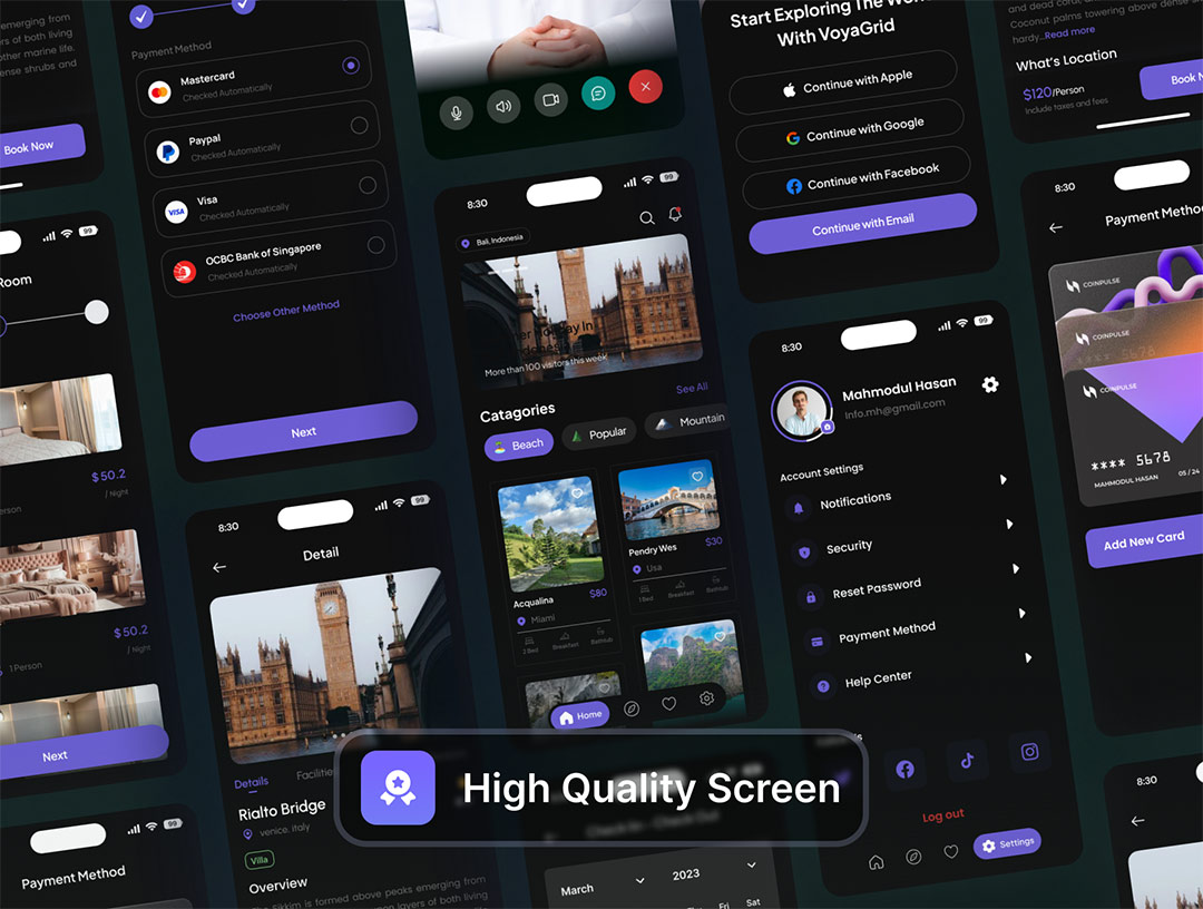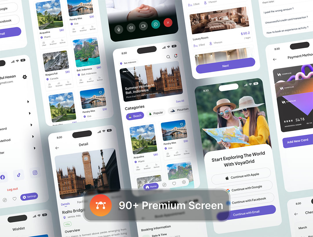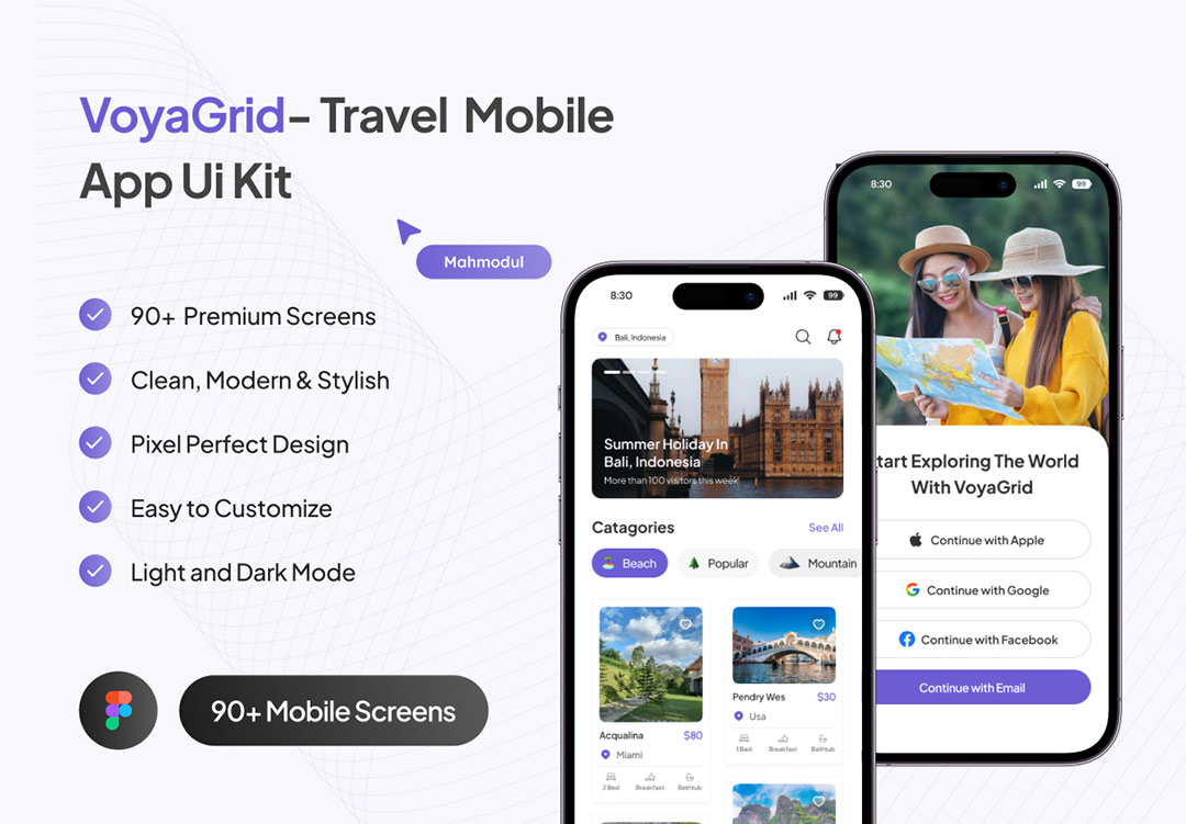 明暗共88页旅游,商务休闲旅行app设计figma源文件