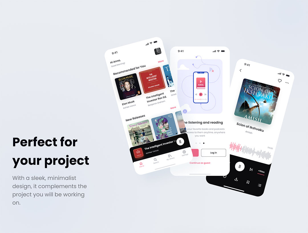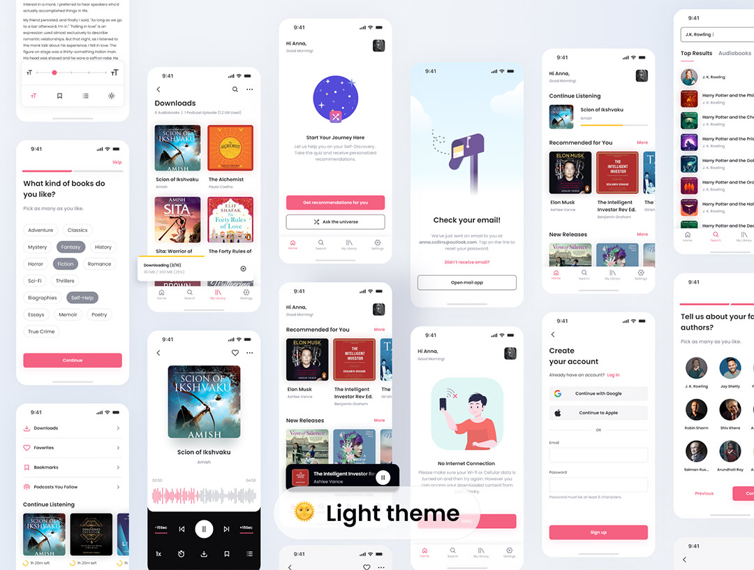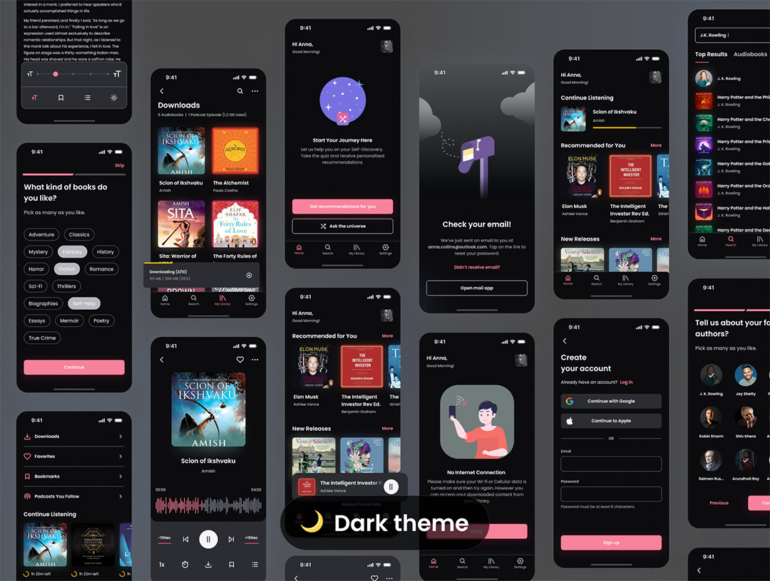 100页明暗有声书,音频app设计figma源文件