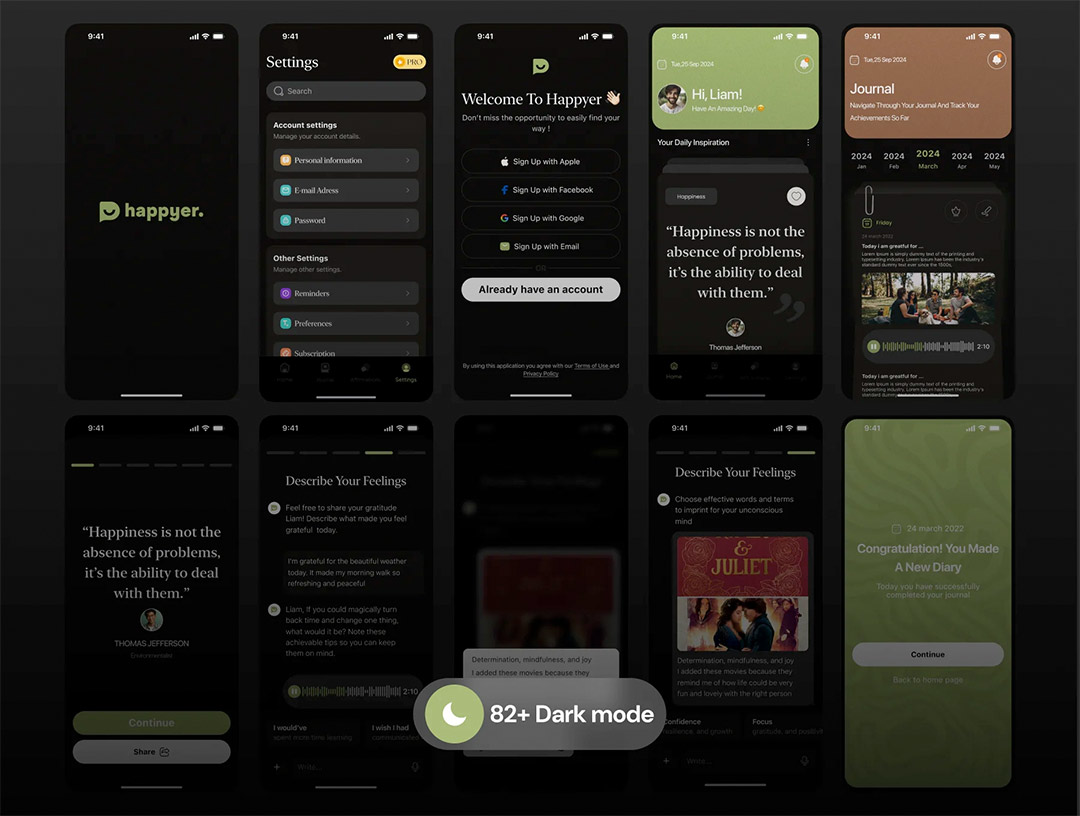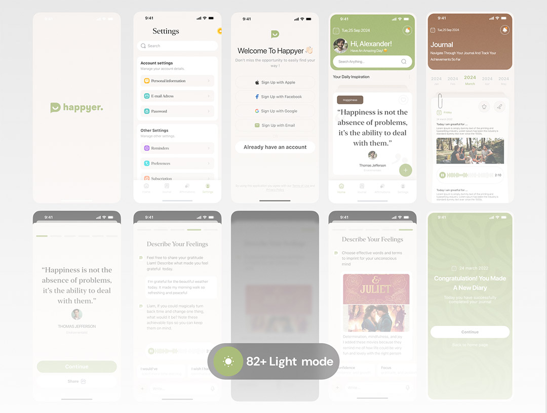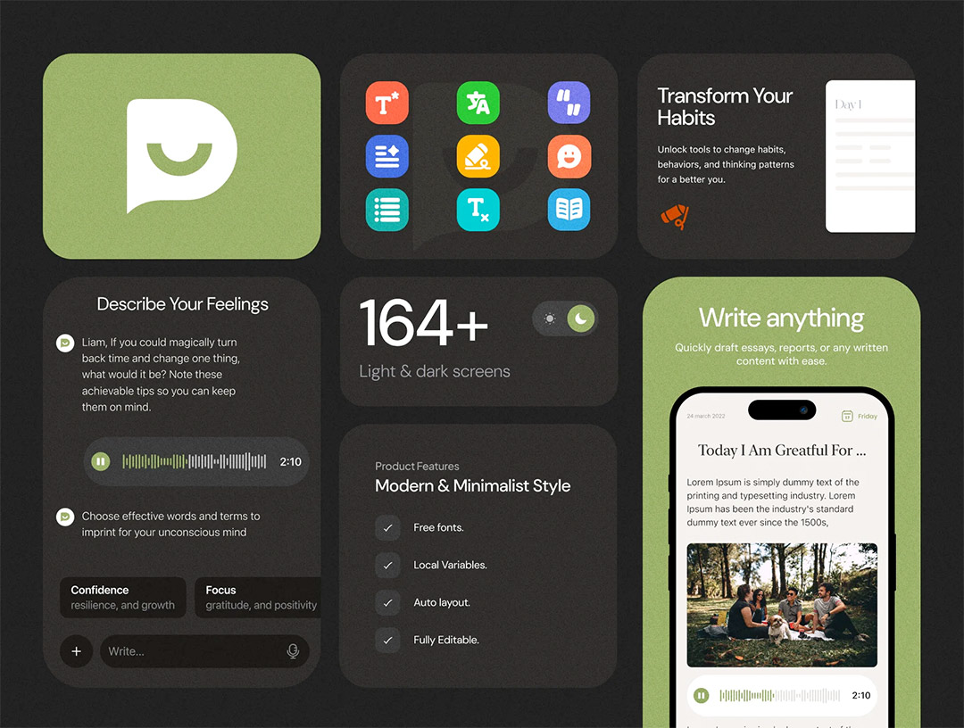 明暗共160页日记和心理健康追踪app设计figma源文件