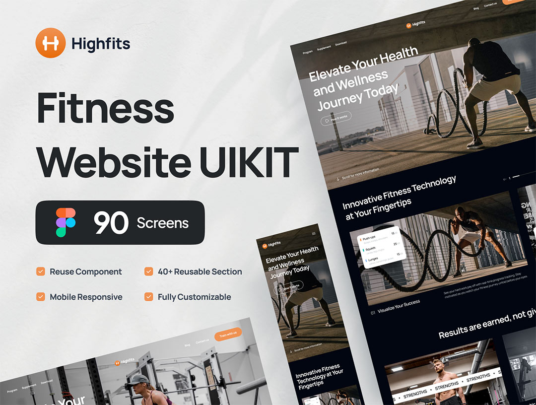 90个组件健身网站UI套件figma格式
