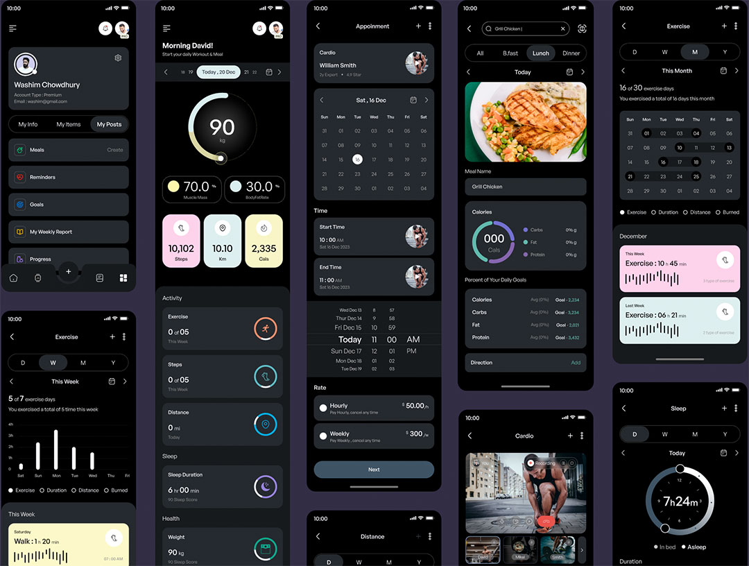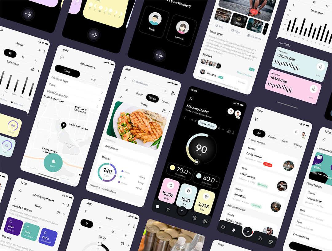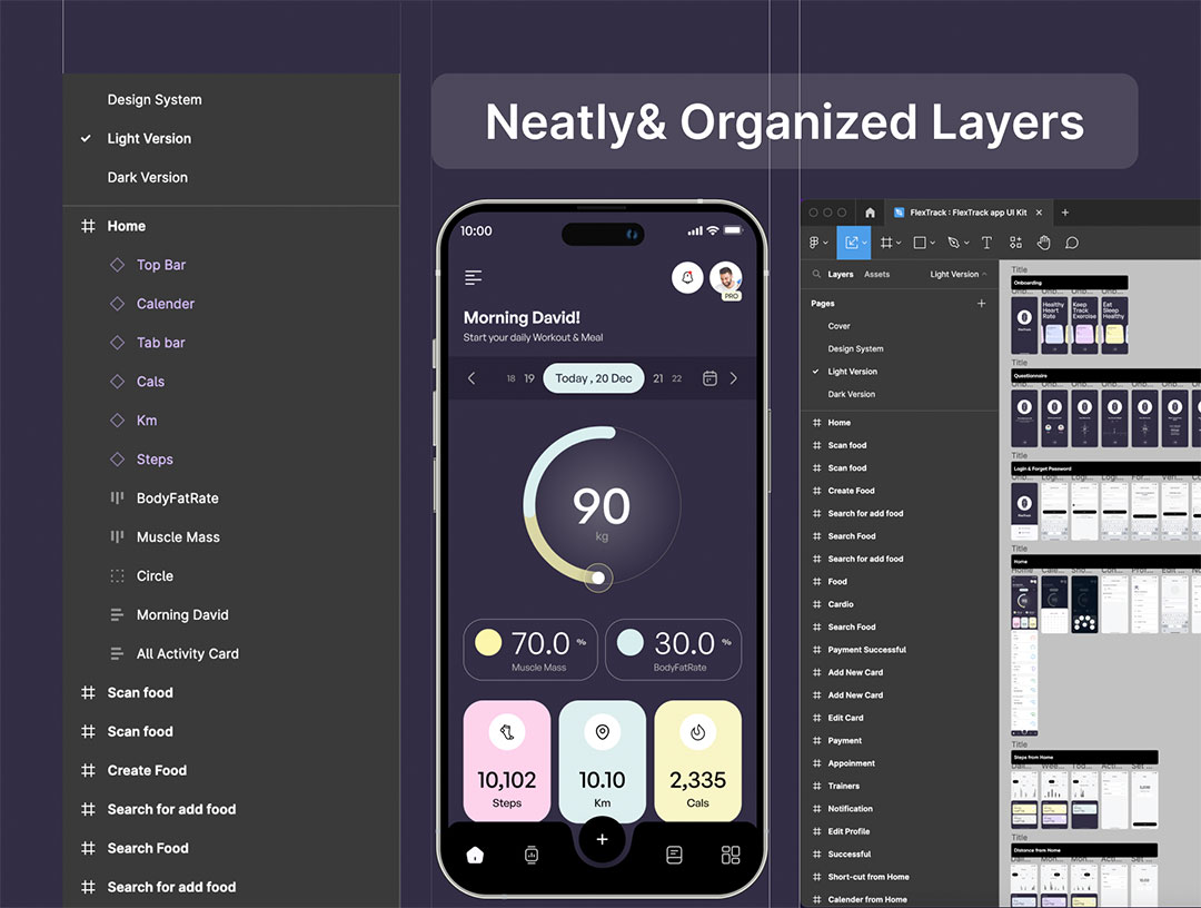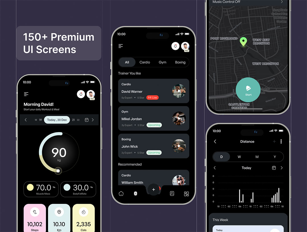 明暗共150页健身运动,健康跟踪平台APP界面设计figma格式