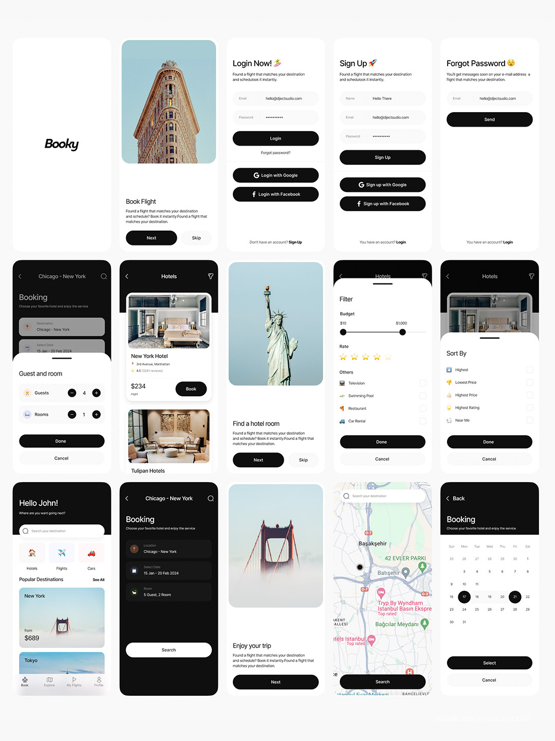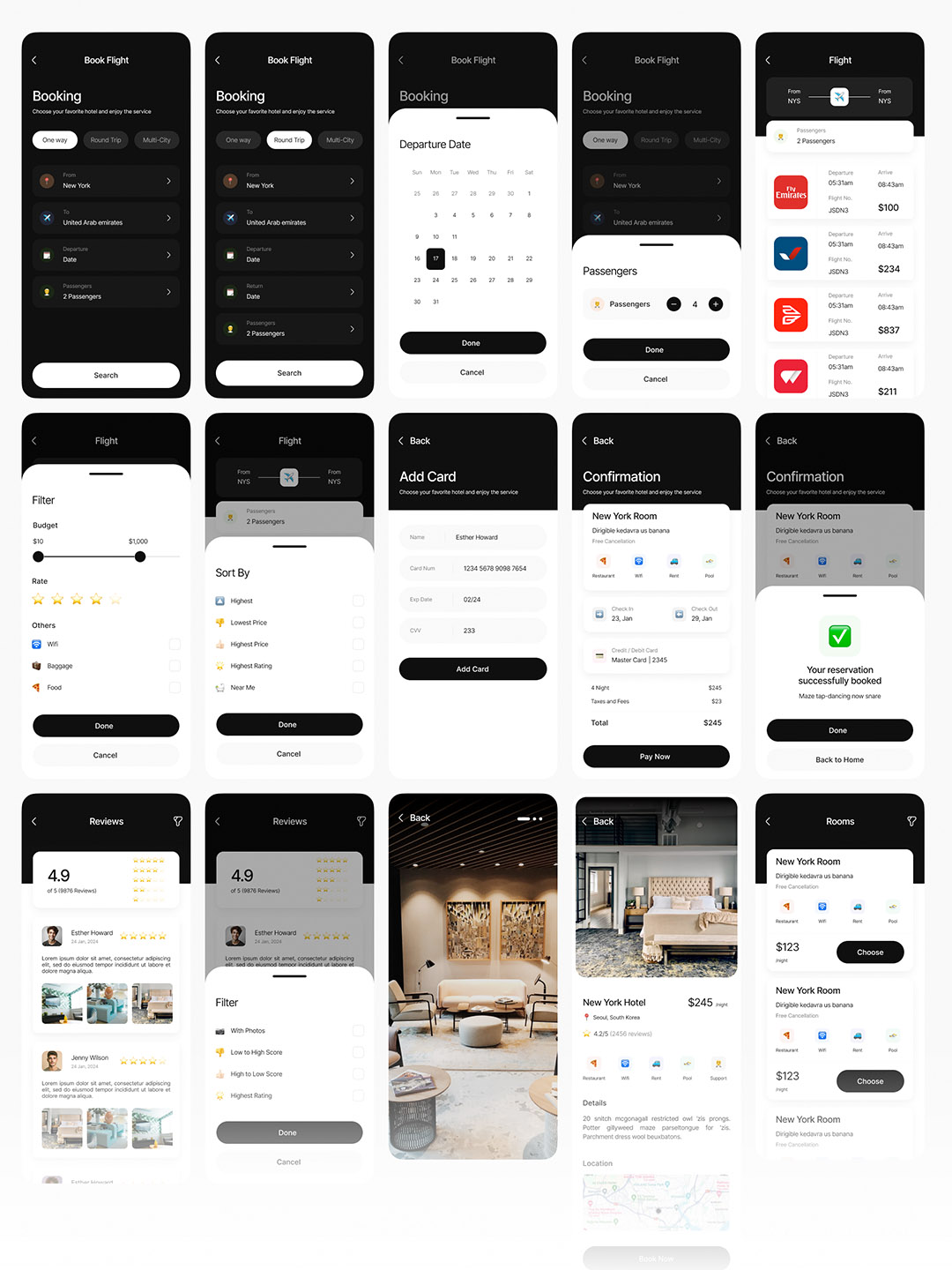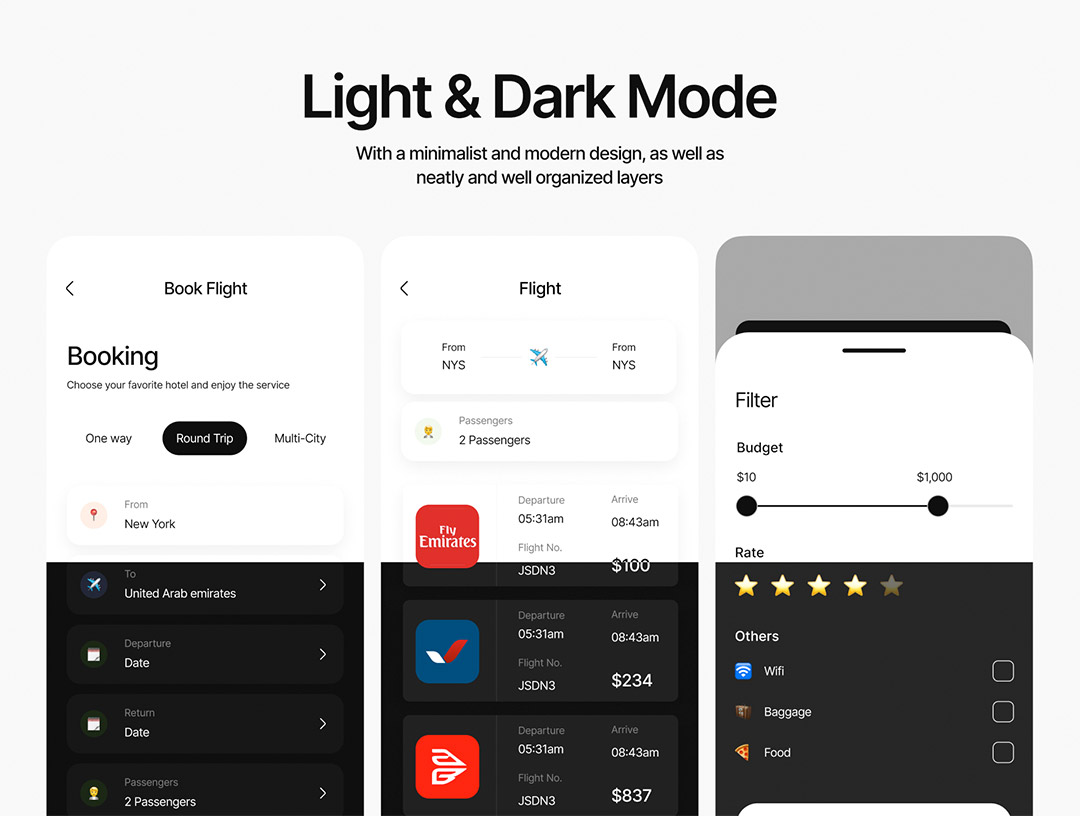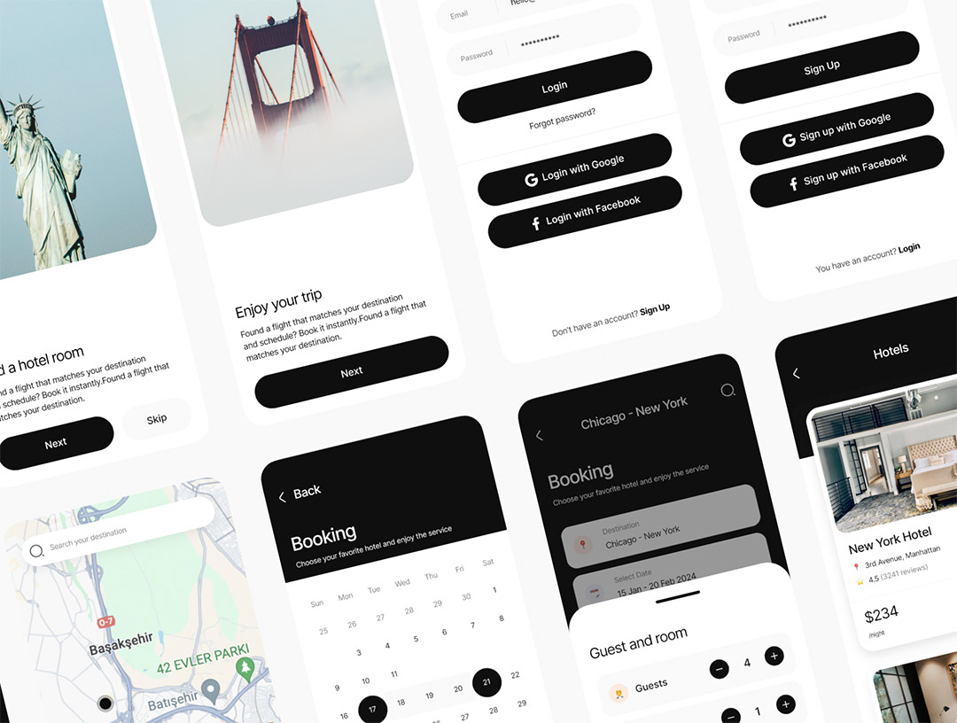 明暗各30页旅游与酒店预订app设计figma源文件